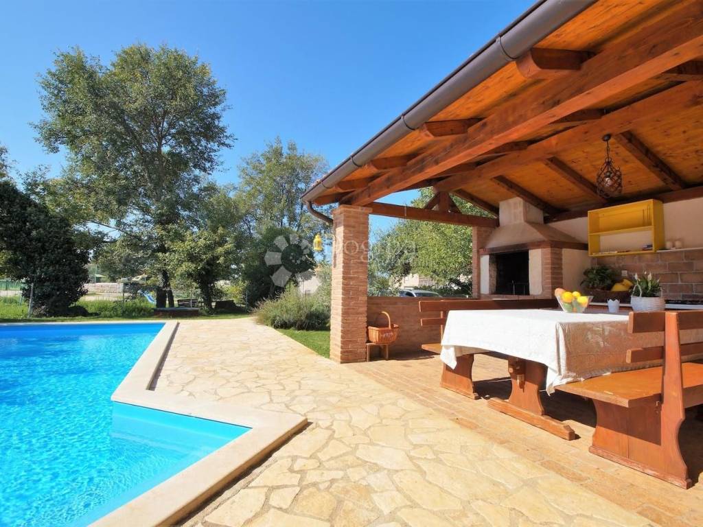 Only 2 km from Blaz Bay is located this beautiful ground floor house of 12 m2. Blaz Bay is located on the Rakalj side of the Raška Bay. The bay was once known for its mills, of which there were as many as five, at sea level, which was a rarity. The mills were powered by water from several springs in the area, and the springs were also used for drinking water. People from the surrounding villages came to Blaz for water. It is known that people even came from Sveti Lovreč with barrels loaded on donkeys or oxen to Trget, from where they reached Blaz by sea to fill the barrels with water. Documents about the mills first appear in 1572, when Gasparo Chersainer from Kršan sold his mill to Girolamo Manzini from Labin, and they operated until the Second World War. The remains of the mills can still be seen today. The house is located on a 738 m2 plot. It consists of an L-shaped hallway, connected to the living room, separating three bedrooms, two bathrooms and one toilet. The kitchen combined with the living room has been a trend for some time, which can be seen in this house, where more natural light is automatically obtained, and it also favors interaction between people, as well as easier sharing of family moments. The living room opens onto the back of the house, which borders nature. The night part is separated by three bedrooms. All bedrooms in the house are equipped with air conditioning. Two separate bathrooms, one with bath and the other with shower and separate toilet. A solar water heater is an economical alternative to a gas and electric water heater. In front of the house there is a swimming pool of 34 m2 with a sun deck. In the garden there is also a barbecue area with a dining table and private parking for several cars. This type of property is an opportunity to create a home or as an investment in tourism. * GROUND FLOOR * OPEN SPACE KITCHEN AND DB * 3 BEDROOMS * 2 BATHROOMS, 1 WC * SOLAR BOILER * SWIMMING POOL 34 m * STYROFOAM FACADE 5 cm * BIO SEPTIC PIT * ADAPTATION 2012.
