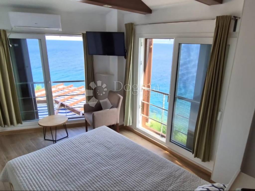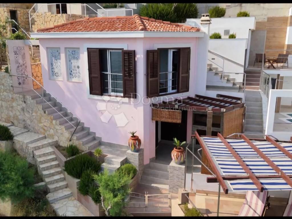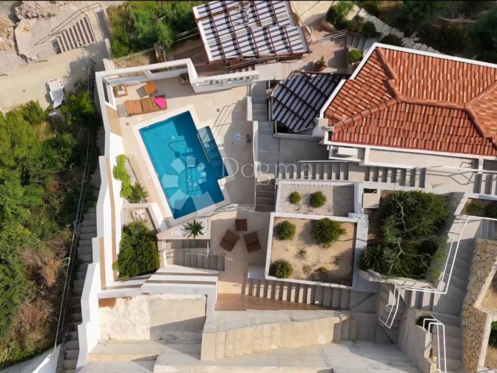 Located in the charming coastal village of Stanići, this villa is a true gem on the Adriatic coast. Situated on a steep hillside just above a beautiful pebble beach, it offers a breathtaking panoramic sea view.