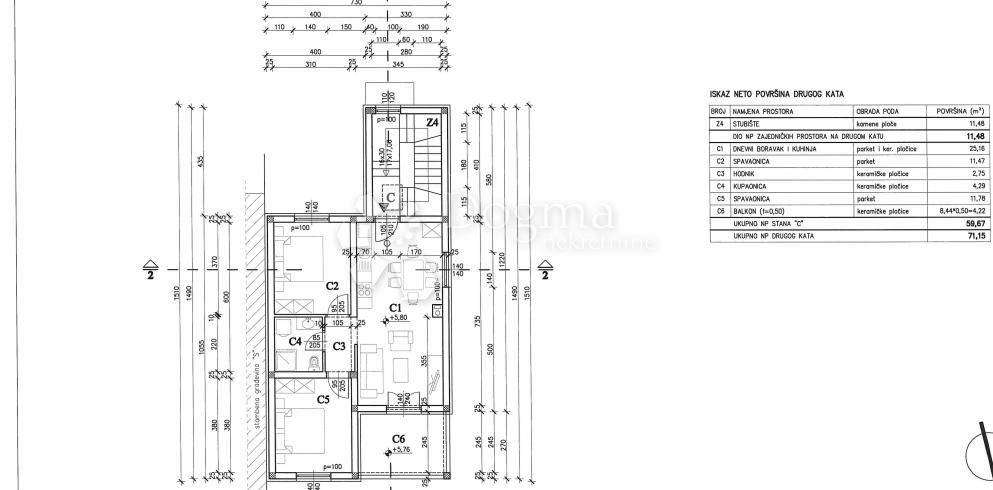 There are two 2-story buildings under construction in this complex, rich in amenities. There is one residential unit on each floor. The apartments are designed with two bedrooms, a kitchen with a dining room, a living room, a bathroom and a balcony. It is about high-quality construction of apartments that will be equipped with top quality PVC joinery, ceramic tiles and laminate in the rooms. A parking space is provided for each unit, and there is also the possibility of purchasing a garage parking space. The location of the property is close to all the necessary and entertainment facilities, beaches and other attractions.