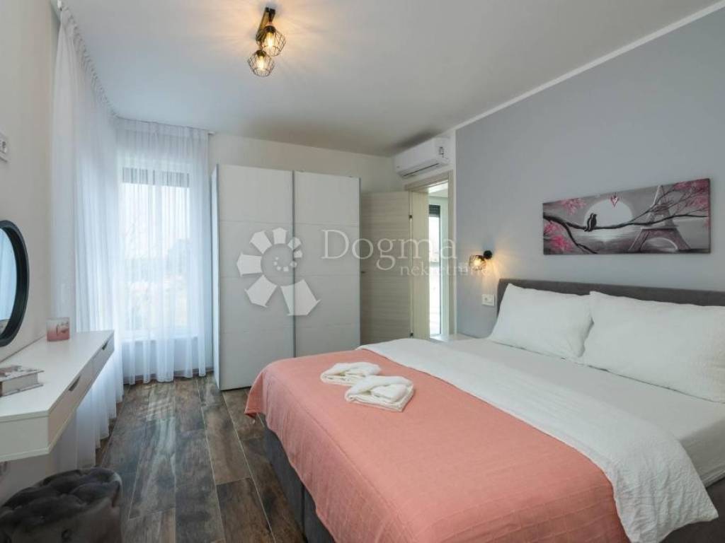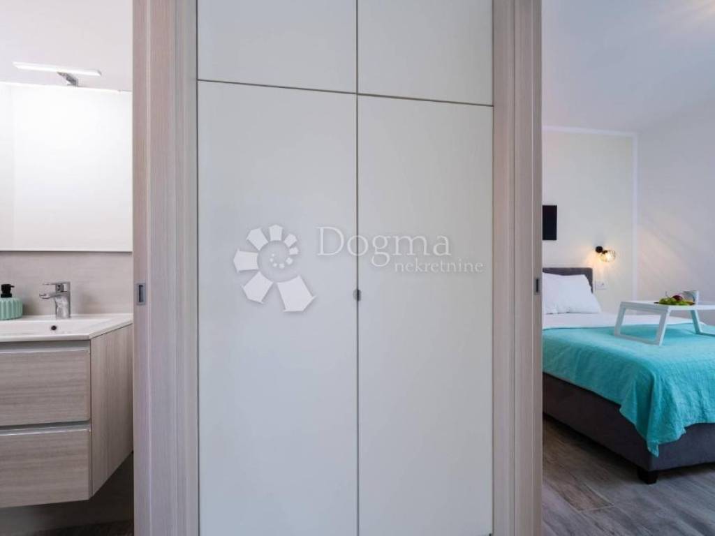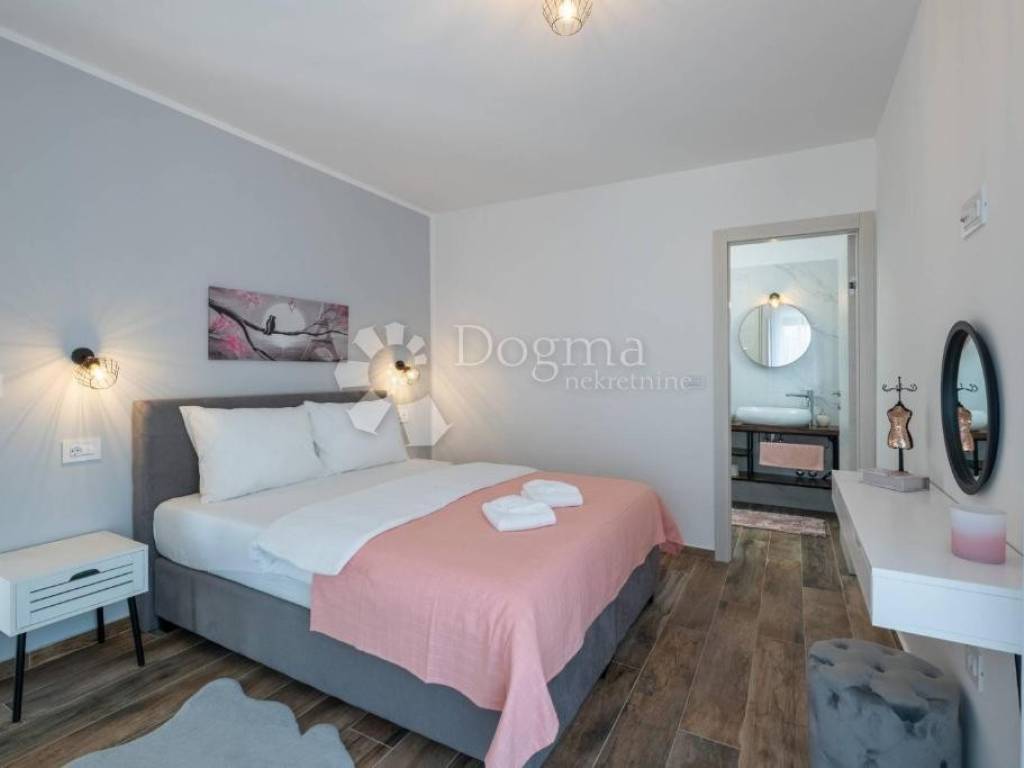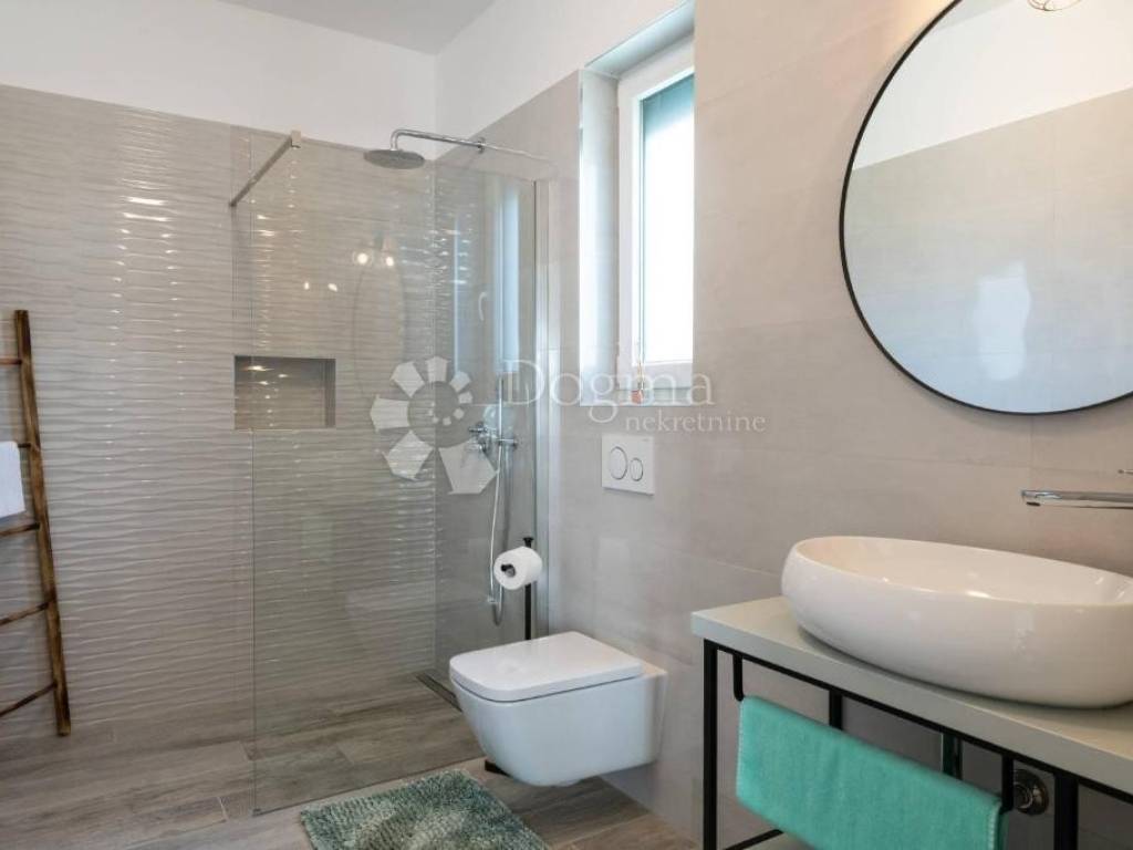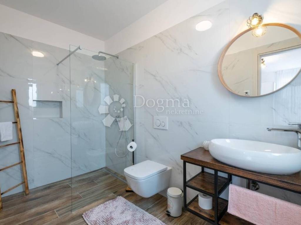 The first floor is reserved for two bedrooms with their own bathrooms and access to a 25m2 terrace with a beautiful view of the Brijuni National Park.