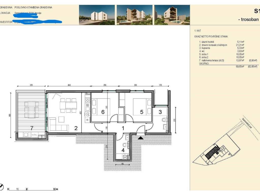 U ponudi je trosoban apartman oznake S1 na 1. katu, koji se sastoji od: