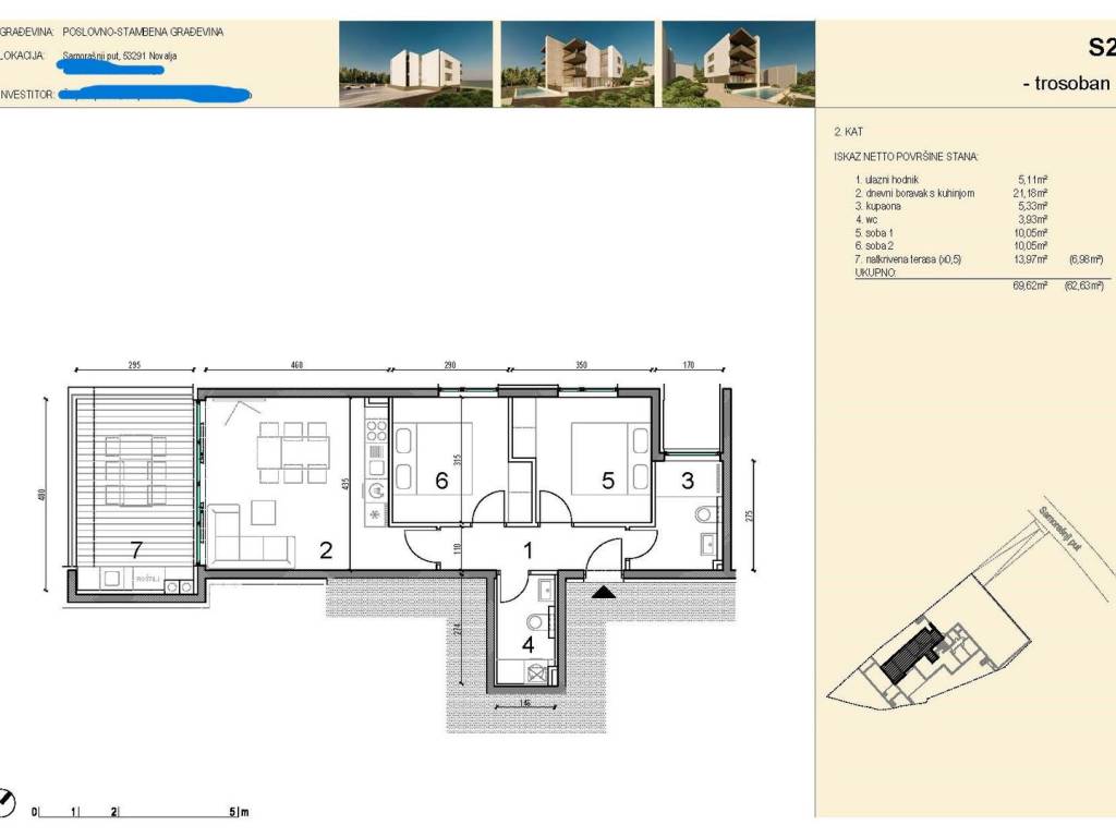UKUPNO: 69,62m2 (62,63m2)