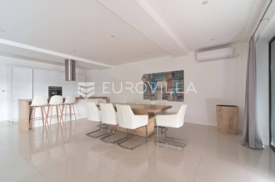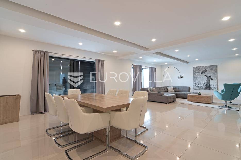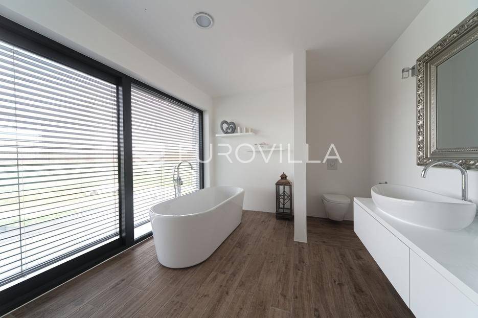 Osijek, Tvrđavica, Ekskluzivna moderna kuća površine 172 m² čistog komfora na prostranoj parceli od 907 m².Na prodaju je izvanredno projektirana, suvremena i energetski učinkovita obiteljska kuća smještena u mirnom i poželjnom dijelu Tvrđavice, idealna za one koji traže udobnost, sigurnost i kvalitetu života u neposrednoj blizini grada.Raspored prostorijaPrizemlje:Prostran i elegantan dnevni boravak povezan s modernom kuhinjom i blagovaonicomIzlaz na uređen vrt i dvorišteKupaonicaOstavaHodnikKat:Tri komforne spavaće sobeLuksuzna kupaonicaDva velika balkona sa staklenim ogradamaGarderobni ormarDodatne informacije:Aluminijska stolarija s električnim podizačima roletaPodno grijanjeKlimatizacijaVideonadzor i portafonGaražaKvalitetna toplinska izolacija (15 cm stiropor)Kuća je idealna za mlade obitelji s djecom i sve koji cijene mirno okruženje, privatnost i brzi pristup sadržajima grada Osijeka.Za sve dodatne informacije i razgled, stojimo vam na raspolaganju.