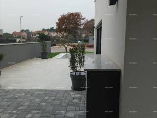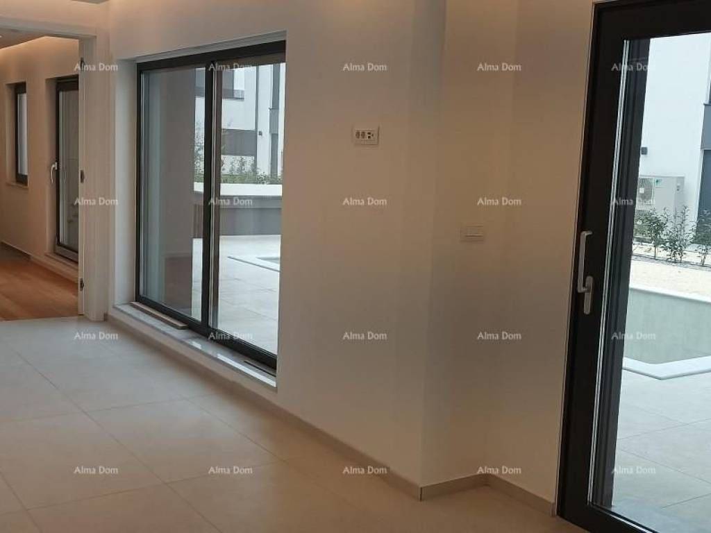 We are selling a luxurious modern detached holiday villa with a view of the sea and the Marina in a closed complex with similar villas.The villa is located on a landscaped yard that requires minimal maintenance. The yard is surrounded by Mediterranean plants that stay green all year round, supplied with automatic irrigation.The villa consists of a ground floor, a first floor, an attic and a large roof terrace.On the ground floor there is also a private garage with an automatic door.From the ground floor you enter the hallway, to the left of the hallway is the door through which you go to the garage, which also has its own separate toilet.There is also a large open living room with kitchen and dining room, a small storage room. High ceilings, arranged ceiling lighting. The living room is dominated by glass walls with aluminum joinery with access to the garden and pool.Upstairs, stairs paved with shiny granite lead to the second living room with a toilet.Here there are 3 more bedrooms, one of which has its own bathroom, and the other two share a bathroom down the hall in the continuation of the living room. So, there are a total of 4 rooms and 3 bathrooms on the first floor, and each bedroom has its own balcony-terrace.Let"s continue up the stairs where in the attic there is 1 smaller room with a central heat pump. Straight from the stairs you can reach a large roof terrace with an overhang. The terrace is covered with soft artificial grass and does not require special maintenance.The whole house is covered with underfloor heating. Each room has air conditioning.The house can be moved into immediately.Info: +385 91 611 57 06Contact: +385 98 420 885azra@almadominvest.com