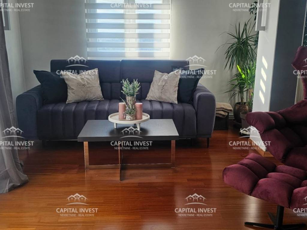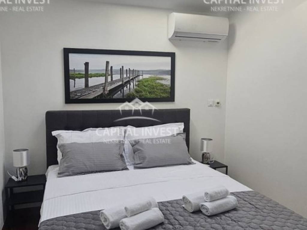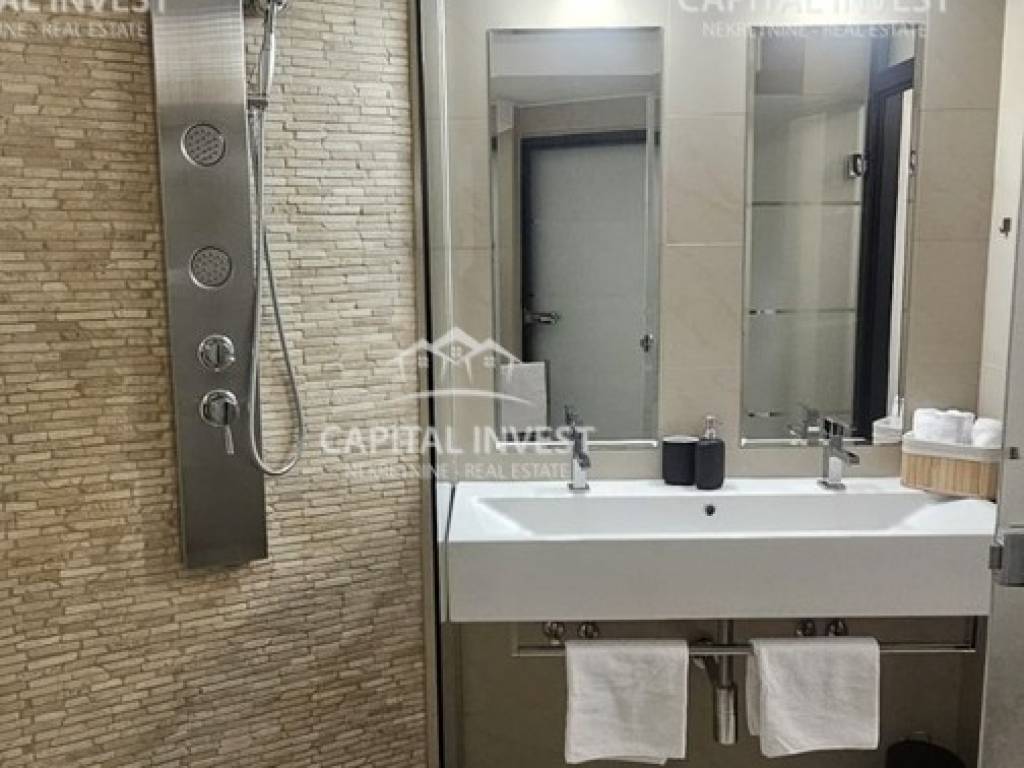 The apartment consists of one bedroom, and its south-facing orientation ensures plenty of natural light throughout the day. It was recently renovated in 2025, ensuring modern living conditions. The interior space is equipped with a kitchen with appliances, a dishwasher, a TV, a bed, a desk, and a washing machine. Additional features such as a jacuzzi and a beautiful, open view of the surroundings add special value.