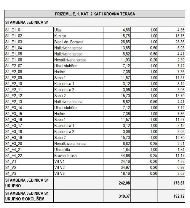 STAN S1- ukupna površina uključujući pripadke 319,37 m2 (neto: 192,12 m2)