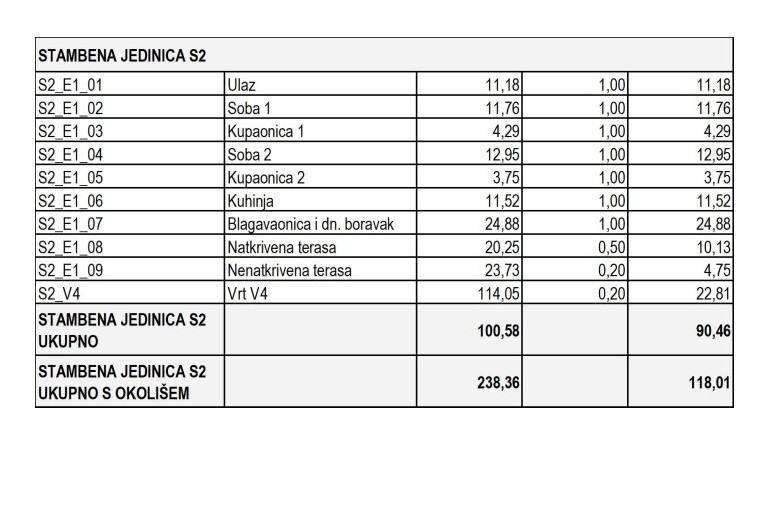 STAN S2-ukupna površina uključujući pripadke 238,36 m2 (neto: 118,01 m2)