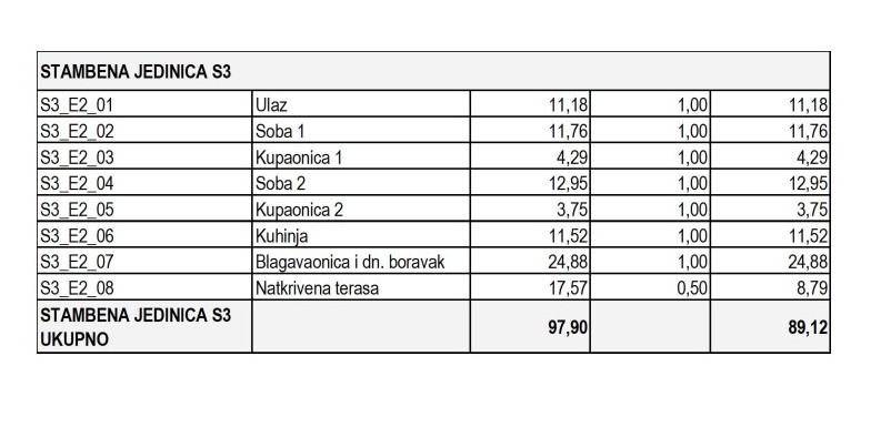 STAN S3-ukupna površina uključujući pripadke 97,90 m2 (neto: 89,12 m2)