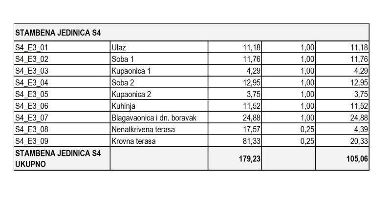 STAN S4-ukupna površina uključujući pripadke 179,23 m2 (neto: 105,06 m2)