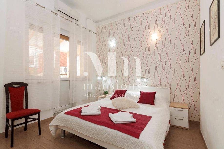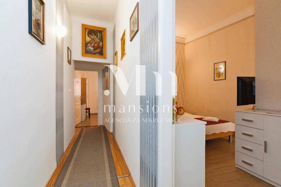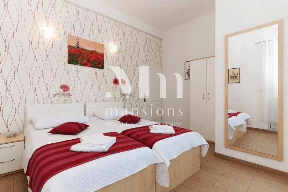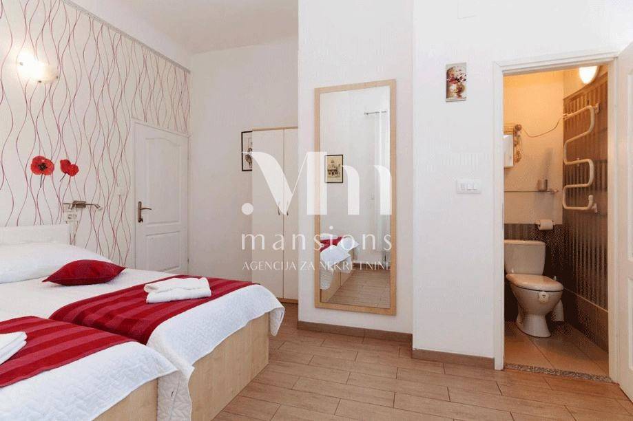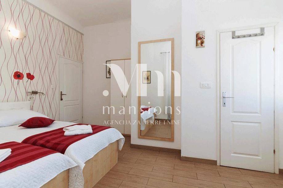 Stan je trenutno podijeljen na jedan jednosobni stan (opremljen kuhinjom, blagovaonicom, kupaonicom i spavaćom sobom) i tri sobe/studio apartmana koji se sastoje od spavaće sobe, kupaonice i terase. Idealna prilika za bavljenje turističkom djelatnošću s obzirom da nekretnina predstavlja već uhodani, uspješni posao.