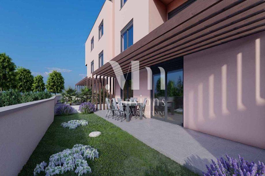 Sastoji se od predsoblja, kuhinje blagovaonice i dnevnog boravka, 2 spavaće sobe, kupaonice, nenatkrivene terase i vrta. Ukupna površina: 129,22 m2 (bruto) / 74,79 m2 (netto)