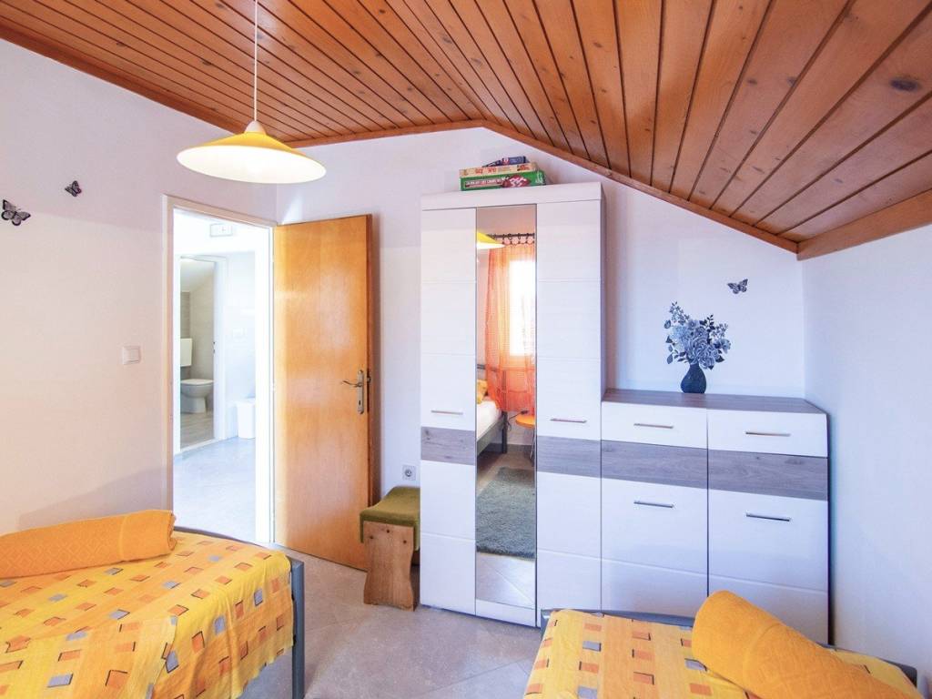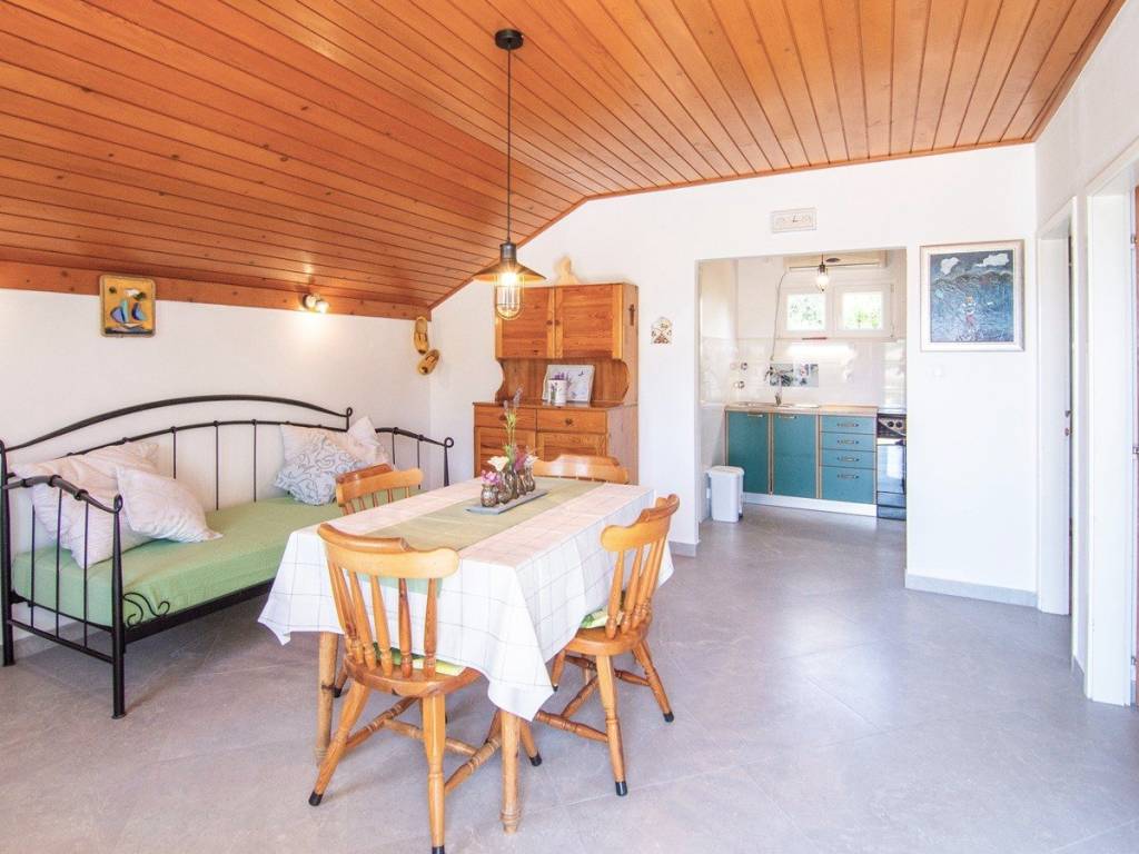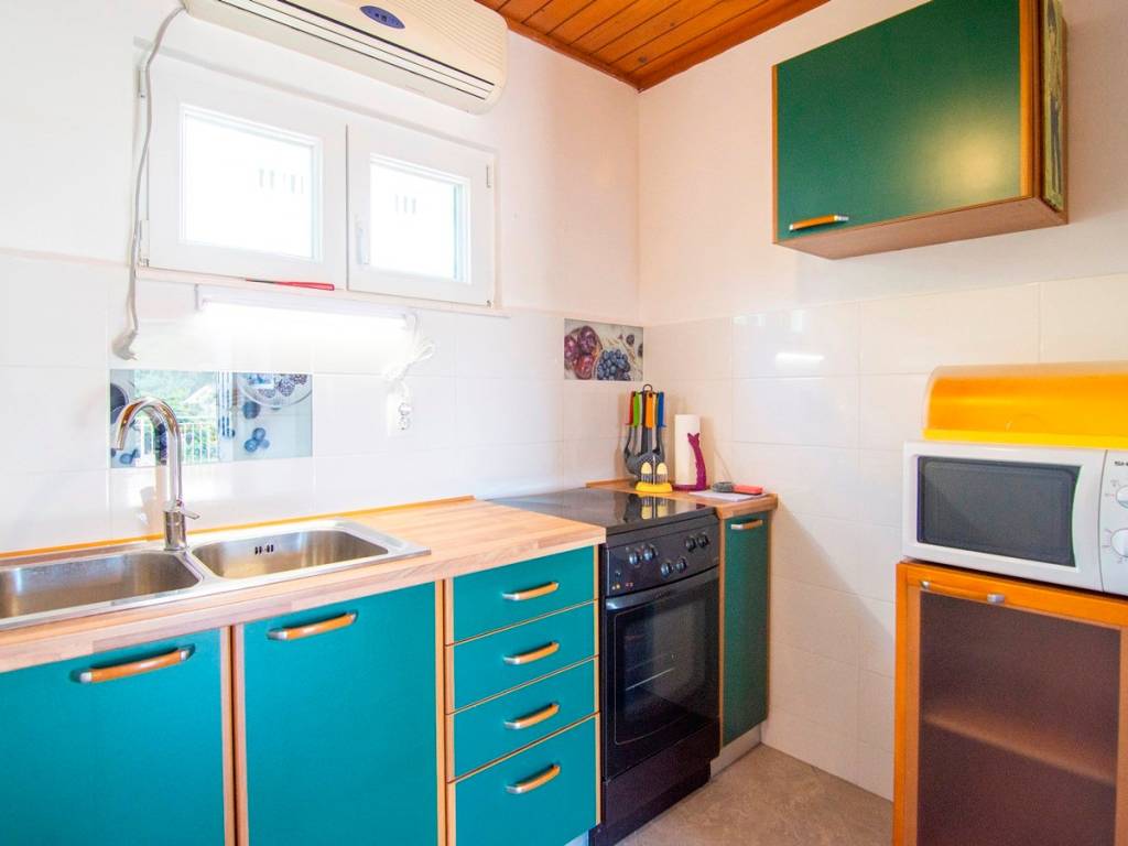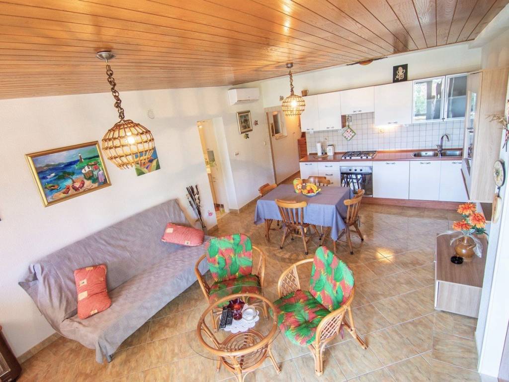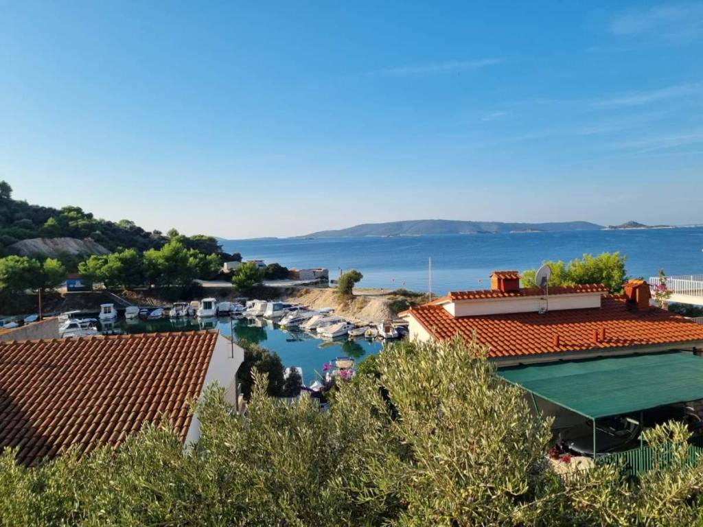 A charming house in an excellent location, close to the sea and the beach and with a beautiful view is for sale. The house of approximately 100 m2 of internal space is located on a plot of 449 m2.It has two floors: ground floor and first floor. On the ground floor there is an apartment with two bedrooms, a bathroom, a living room, a kitchen and a dining room. From the living room there is an exit to a covered terrace ideal for socializing and dining outdoors. An external staircase leads to the first floor where there is a spacious terrace with a beautiful sea view. From the terrace there is access to the apartment which also contains two bedrooms, a bathroom, a living room, a kitchen and a dining room. The house is sold furnished and equipped. It is maintained and ready to move in, but requires refreshing the space.Next to the house, in a small stone outbuilding there is a furnished studio apartment of 16 m2. There are also two more additional buildings on the land, a 9 m2 house that serves as a fireplace and a 22 m2 building that currently serves as a storage room, but leaves space for future buyers to decorate it according to their own wishes. The plot also includes parking for two cars and a garden planted with Mediterranean plants.The orientation of the house to the south provides it with plenty of light and airiness during the day. The quiet location and proximity to the sea make this property ideal for those looking for a holiday home or those with the ambition of renting it out for tourist purposes.The distance from the sea and the nearest beach is only 100 m, from the town of Trogir 10 km, and from Split airport 14 km.
