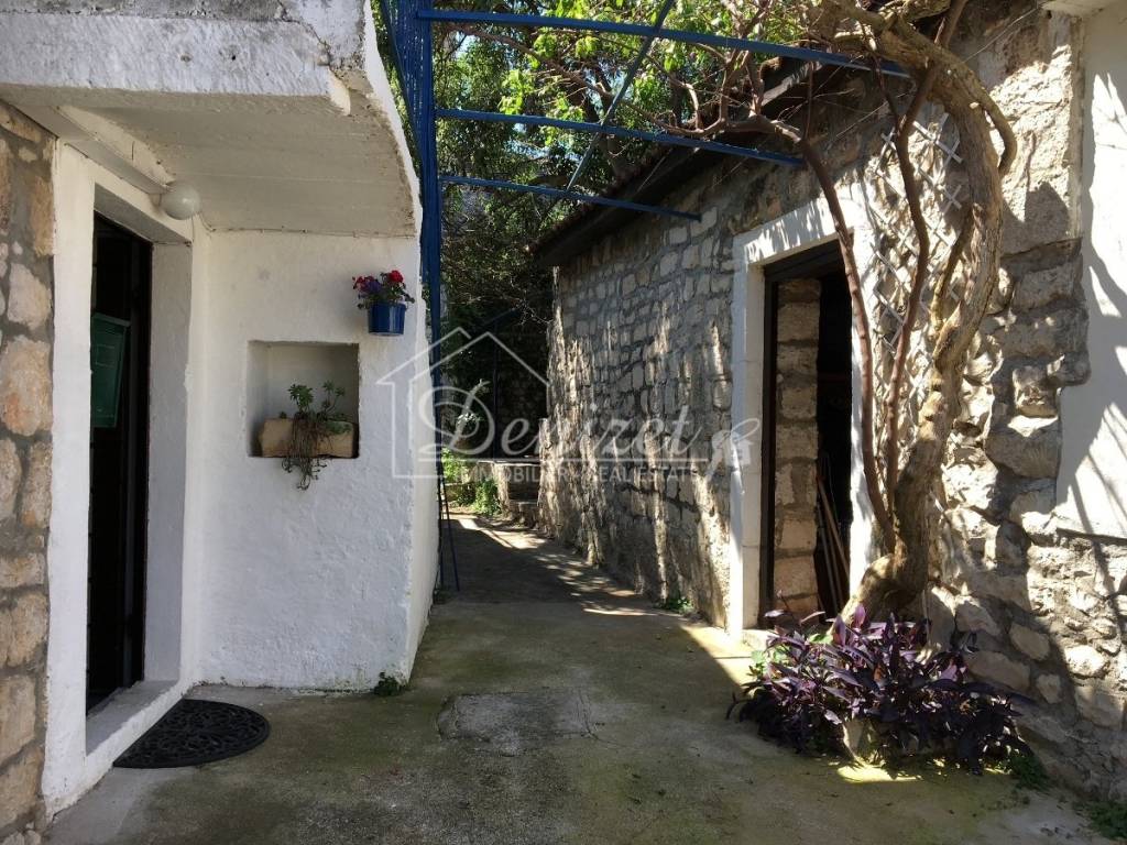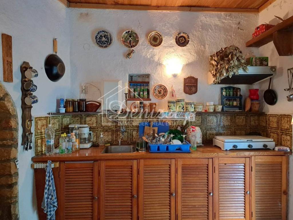 This exceptionally rare offer includes three stone houses, one of which is the main residential building (the main house). The main house has two levels – ground floor and first floor – with a total gross area of 156 m², including terraces. The ground floor comprises a living room, kitchen, pantry, hallway, and bathroom. An external staircase leads to the first floor, where there are two bedrooms. On the side of the house, in front of one of the two ground floor entrances, there is a small terrace. There is also a rear external staircase leading to a small upper terrace with a partial sea view.