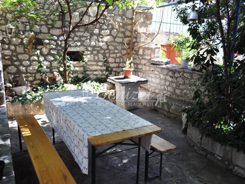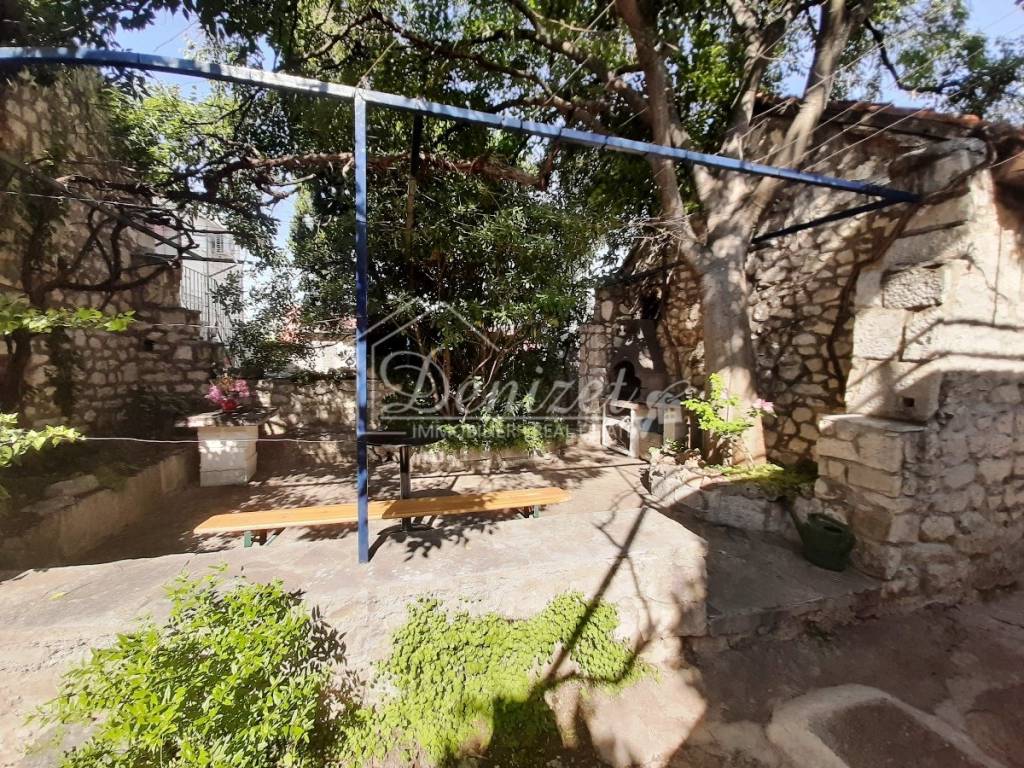 Opposite the main house is the second stone house, consisting of a ground floor and a roof structure. The interior is unfinished and is currently used as a tool shed and storage room, with a floor area of 30 m². Next to it is a courtyard of 37 m², currently used as a terrace with a traditional outdoor fireplace (komin), surrounded by greenery – an ideal spot for hot summer days.