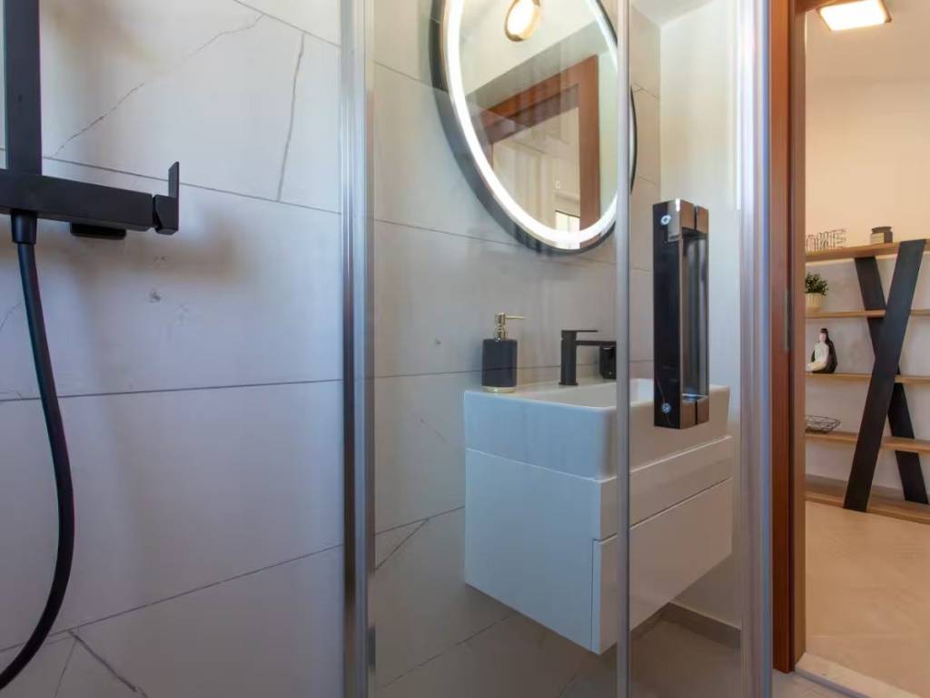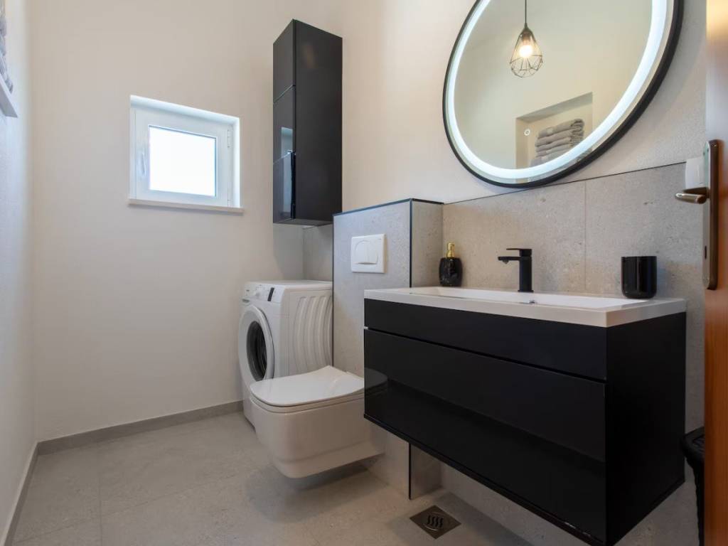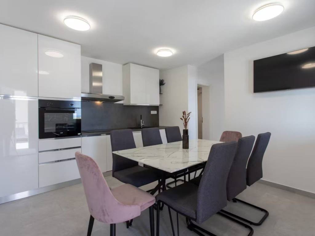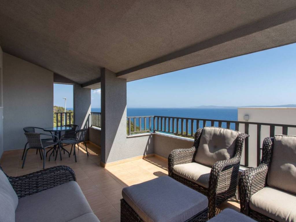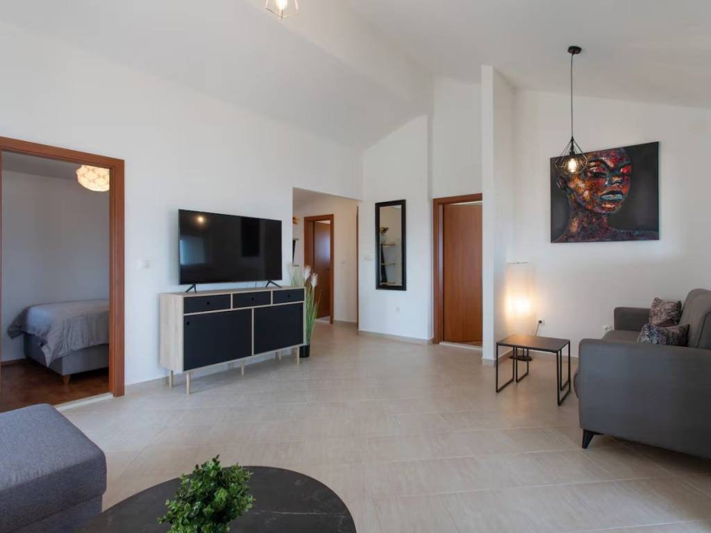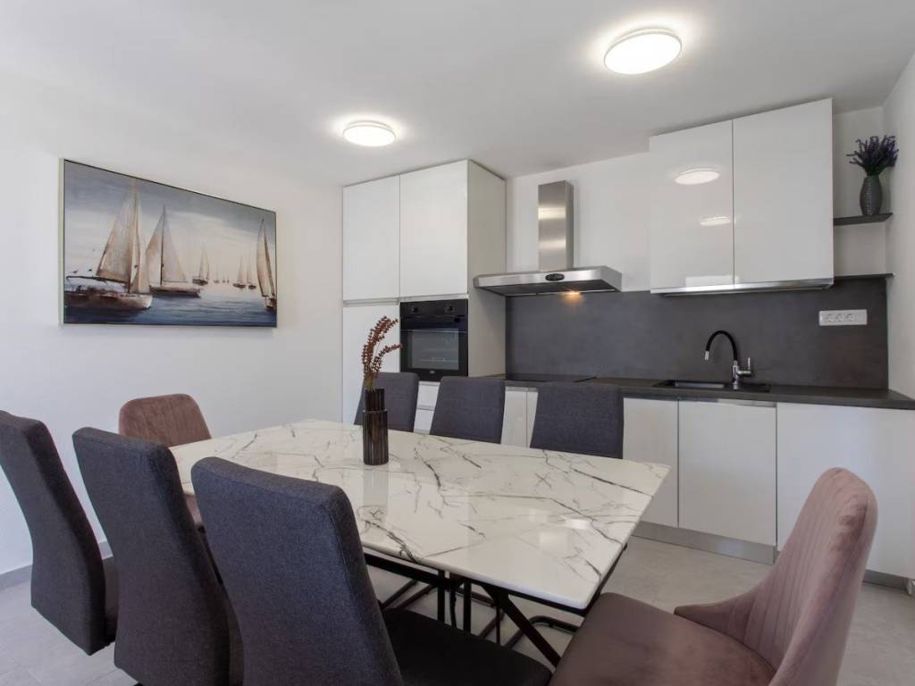 This charming house is located in a quiet part of Okrug Gornji, only 200 m from the sea and the beach. It has a gross living area of 138,61 m2, and sits on a plot of 384 m2. The property consists of two floors: the ground floor and first floor.On the ground floor there is an apartment with two bedrooms, a bathroom, a kitchen and a dining room with access to a covered terrace. An external staircase leads to the first floor, which features an apartment with two bedrooms, a bathroom, a toilet and a living room that opens onto a terrace offering a stunning sea view.The house is well-maintained and in excellent condition, and is being sold fully furnished and equipped, ready to move in. The fenced and beautifully landscaped yard provides parking for several cars.  The southern orientation ensures plenty of light, warmth and airiness throughout the day. This property is ideal as a holiday home or for rental for tourist purposes. It is 5 km from Trogir, 10 km from Split Airport, and 30 km from the city center of Split.
