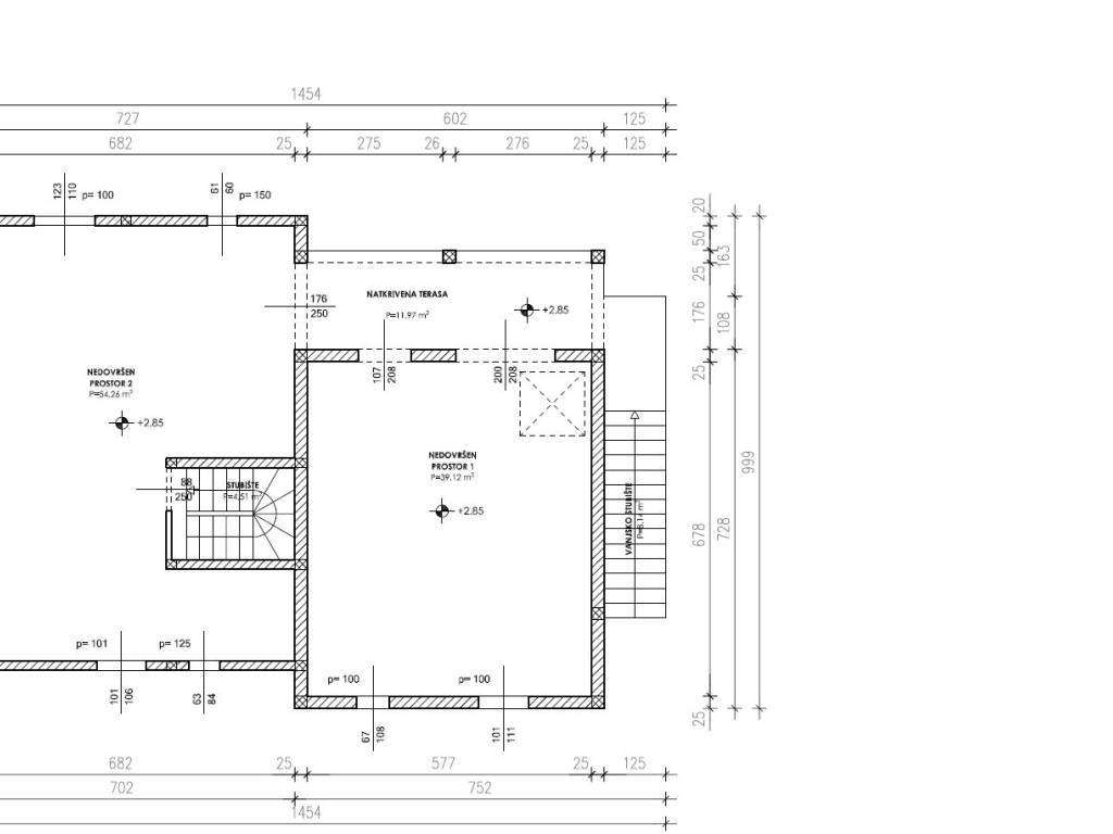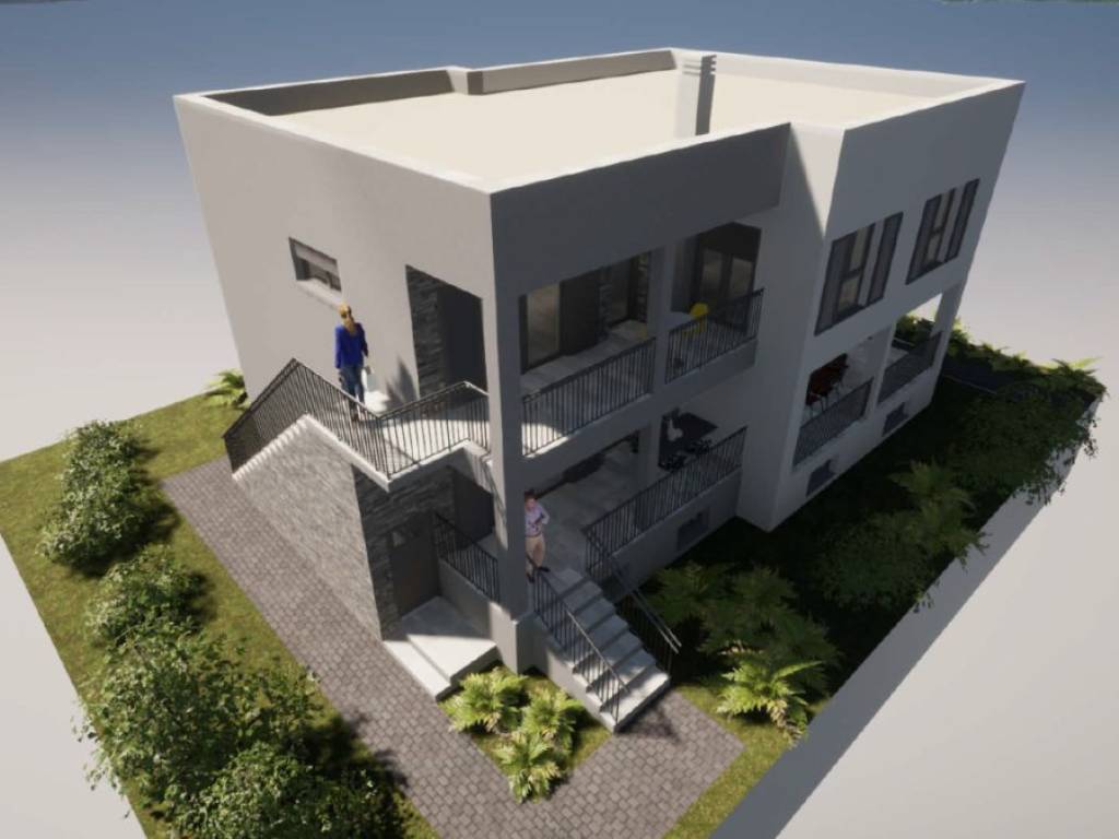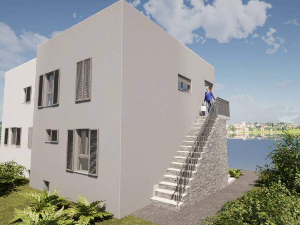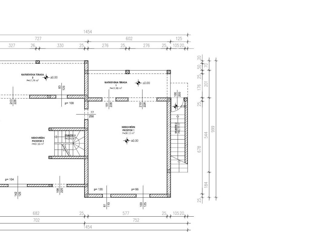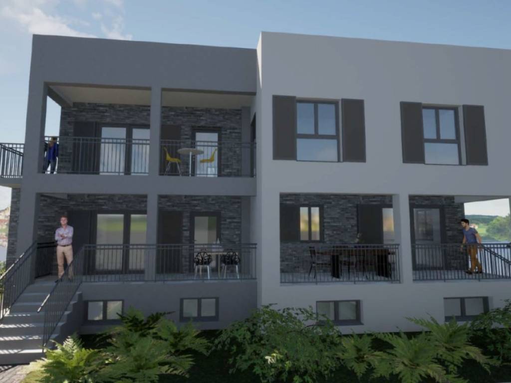 For sale is an unfinished house in roh-bau edition, which consists of three floors: basement, ground floor and first floor. Total net area 342 m2, located on a spacious plot of 824 m2. Ideal for family life, but also excellent as an investment for rental purposes.There is already a conceptual proposal for the completion of the house. It is designed as a building with two residential units.- The basement would contain a fitness room, bathroom, wardrobe and storage room.- The ground floor would consist of a one-bedroom apartment and a large storage room.- On the first floor there would be a spacious apartment with three bedrooms, bathroom, toilet, storage room, living room, dining room, kitchen and a covered terrace.The property is located in a quiet part of the village, only 350 m from the sea and with a partial sea view. It is 8 km from the town of Trogir, and 11 km from Split airport.