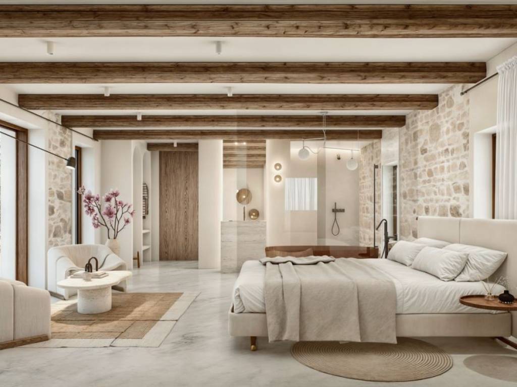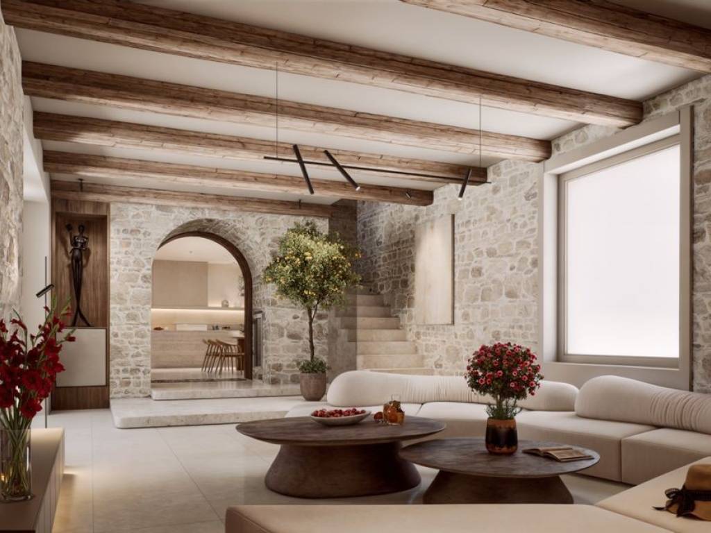 An authentic Dalmatian property built in 1900 is for sale, situated on a 476 m² plot.  It extends over three floors: ground floor, first floor and attic with a sloping roof. Each floor has a floor area of 154 m2, resulting in a total building area of 462 m²..This property offers a unique opportunity to transform a stunning historical building into a luxurious private residence, a boutique heritage hotel, or an apartment accommodation with a restaurant.Interesting features of the villa are 1 meter wide stone walls that provide natural insulation and exceptional privacy, original stone details and interior elements, including a traditional deep wood-burning oven, and 3 meter high ceilings that offer the impression of spaciousness and volume. It is important to note that the villa is also connected to electricity and water. It is built entirely of Brač stone, which ensures timeless durability, architectural value and authenticity.The villa has access to a spacious yard that can be beautifully landscaped with Mediterranean plants, but can also be transformed into a luxurious restaurant with an outdoor terrace or a private oasis with a swimming pool for relaxation and enjoyment. The property is being sold in its current condition, with valid permits, at a price of 480,000 €.However, there is also the option to purchase the property fully renovated, based on a "turnkey" concept. The owner has created 3D visualizations of the interior and exterior to illustrate a possible future design, but the entire concept can be customized according to the buyer’s preferences. The only restriction is that the structural layout must remain unchanged to preserve the approved building parameters, while allowing full creative freedom in the interior design.According to the visualization, the villa is designed as a luxury residence that contains a spacious living room, kitchen, dining room and toilet on the ground floor, and a total of four luxuriously decorated bedrooms with private bathrooms on the upper floors. The landscaped courtyard includes a small 40 m² guest house, a swimming pool with a sunbathing area, and an outdoor dining space. The plot also features a garage with one parking space.Excellently located in the heart of Supetar, the villa is just a 2-minute walk from the sea, charming seaside restaurants, the local police station, hospital, kindergarten and school - close to all the amenities and activities essential for everyday life. Despite its central location, the property is tucked away in a quiet side street, offering rare privacy and tranquility that is a beautiful contrast to the nearby city bustle.The photos in the ad show the current condition in which the villa is being sold. The 3D photos show an approximate idea of what a future renovation project could look like. They are for marketing purposes only.