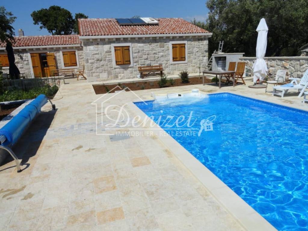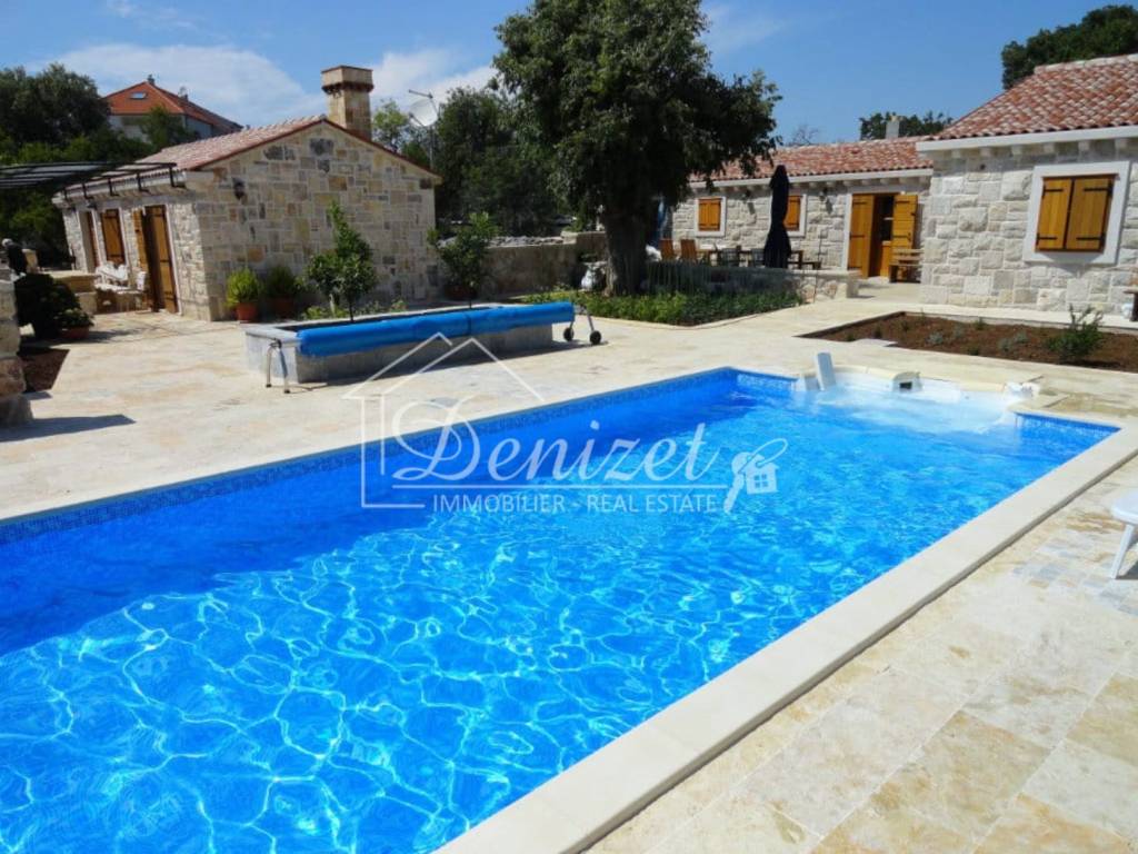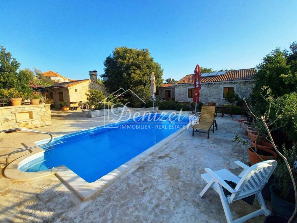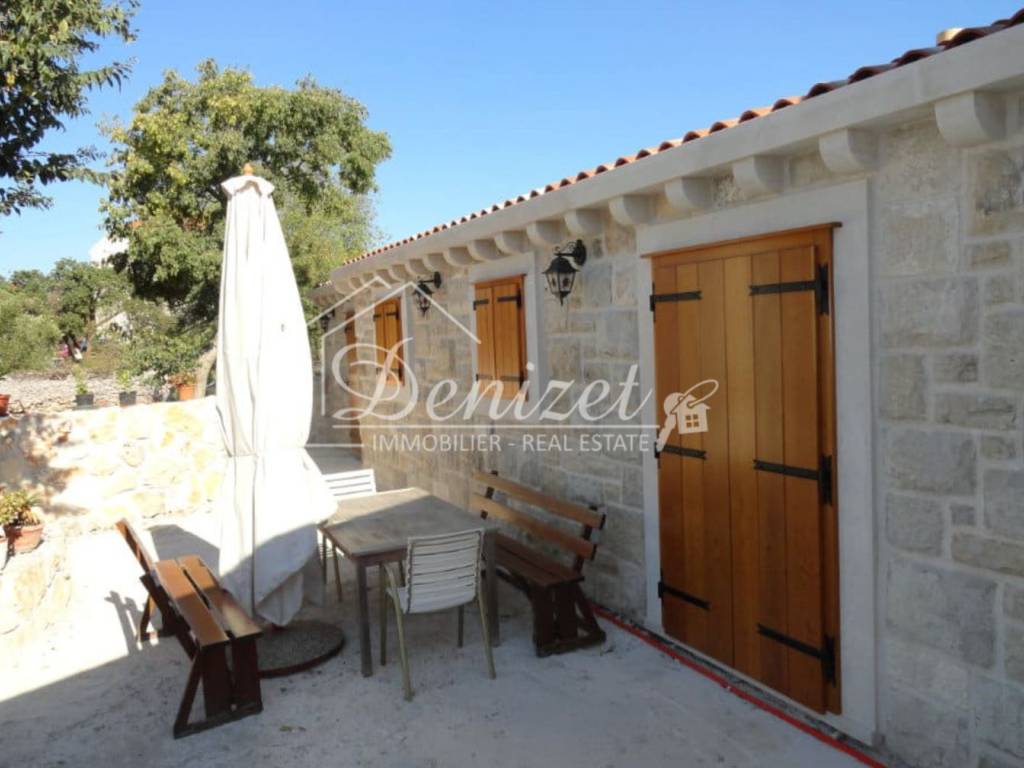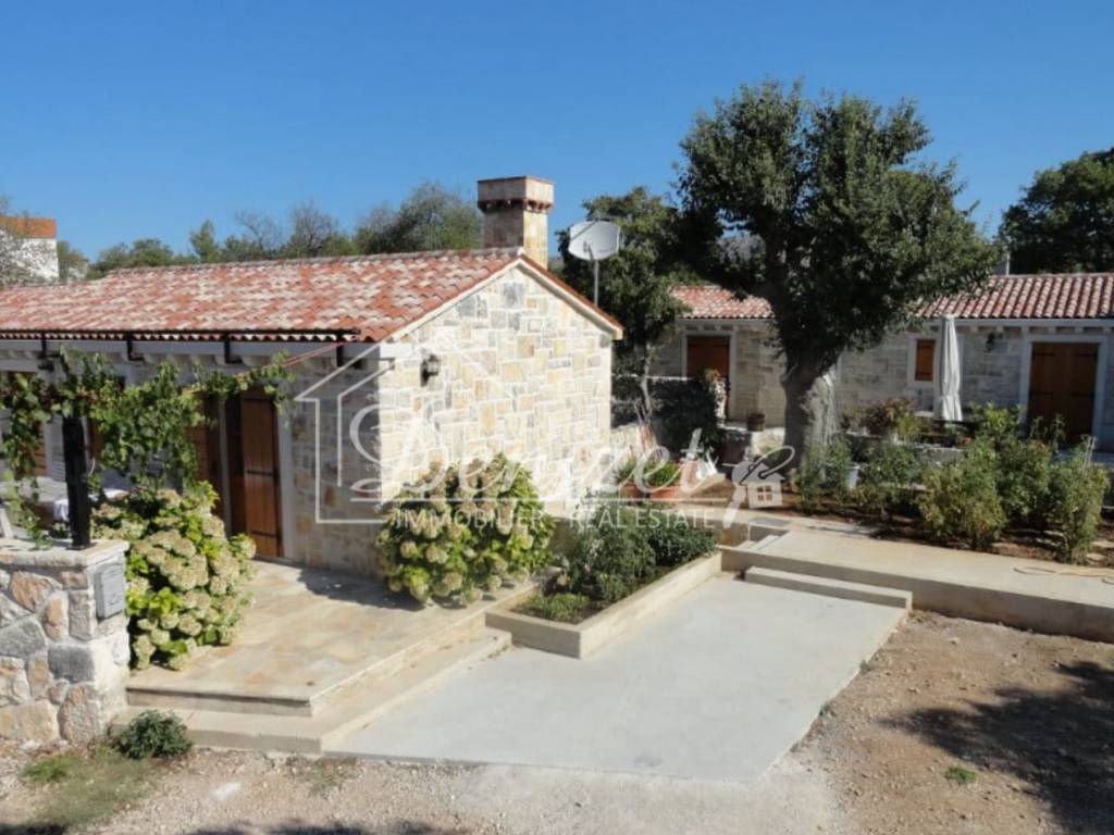 Rogoznica, two stone houses built and furnished in the authentic Dalmatian style. The houses are located in a settlement over 400 years old. The main house has a gross construction area of 164 m2, ground floor, with a gable roof, consisting of: living room and kitchen, three bedrooms, two bathrooms, hallway and storage room. The second house has a gross construction area of 99 m2, gable roof, consisting of: ground floor and basement, consisting of: living room and kitchen, bathroom and bedroom. There is a storage room of 37 m2 in the basement. The total land area is 550 m2, the garden is landscaped and has several parking spaces and a concrete massage pool 8 x 4 m, garden is planted with Mediterranean plants. Distance from the center of Rogoznica 1 km (3 min by car), from the beach: 850 m (12 min walk), from the international airport Split: 33 km (36 min by car). What makes these properties special is their privacy and authenticity.