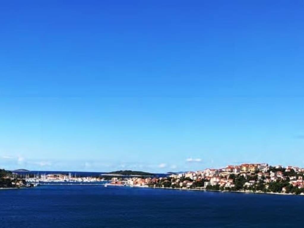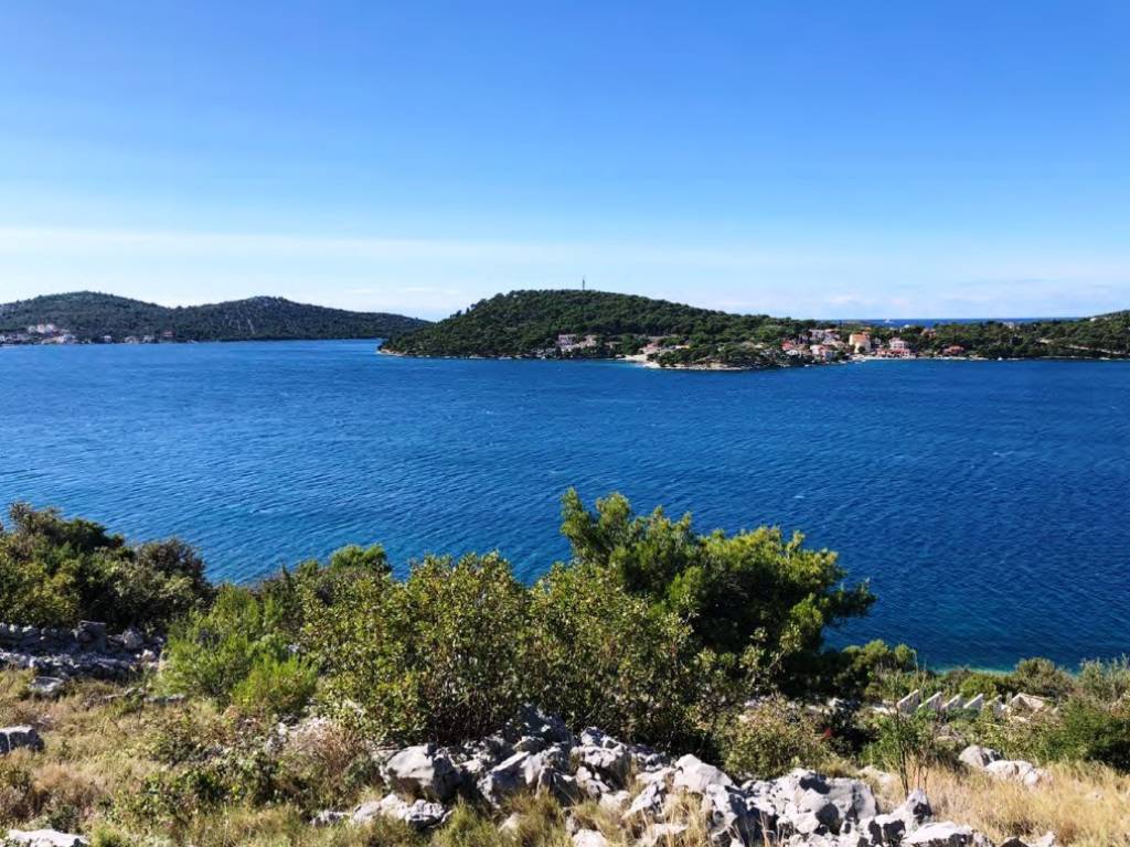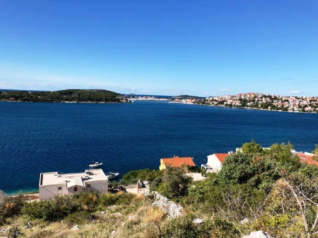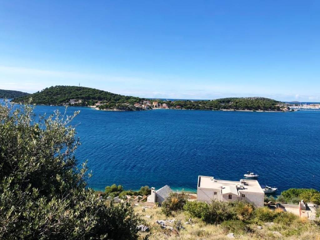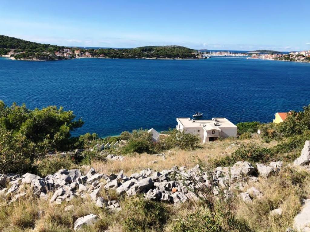 This 1,834 m2 building plot is located in the second row to the sea, in a quiet location, on the edge of the local development area. There is already an approved project for the construction of two villas, each with an approximately 27 m2 infinity pool. Both houses are designed almost identically. Both villas each have approx. 255 m2 of living space, spread over three floors with an additional, partly covered 180 m2 of balconies and terraces. Planned are three large bedrooms with a dressing room and en-suite bathroom, a study room, a fitness room, a living room, a kitchen, a dining area, several storage rooms, a laundry room and a guest toilet. There is also a 34 m2 double garage and two outdoor parking spaces. Water tanks with a capacity of 75 m3 ensure that the house is supplied with water.The property is located opposite the well-known harbor “Marina Frapa Rogoznica”. It has an unobstructed panoramic sea view, even from the ground floor or the terrace, due to the steep hillside location and the fact that the house in the first row has already been newly built.A private concrete staircase leads down to the sea, where there are few tourists even in season. There is an access road, but it needs to be built as part of the construction work. The municipality has already granted permission for this.The property faces west.Distances:Sea: 70 m - Beach Bar: 700 m - Supermarket: 5 km - Trogir: 25 km -Split airport: 32 km.