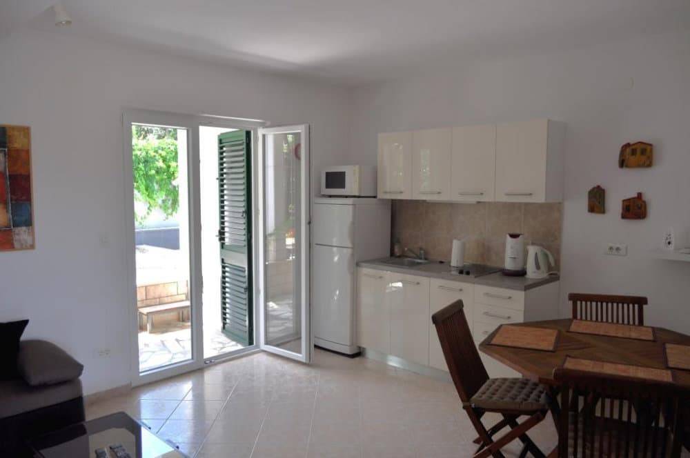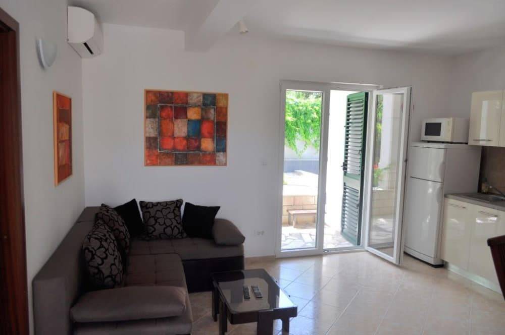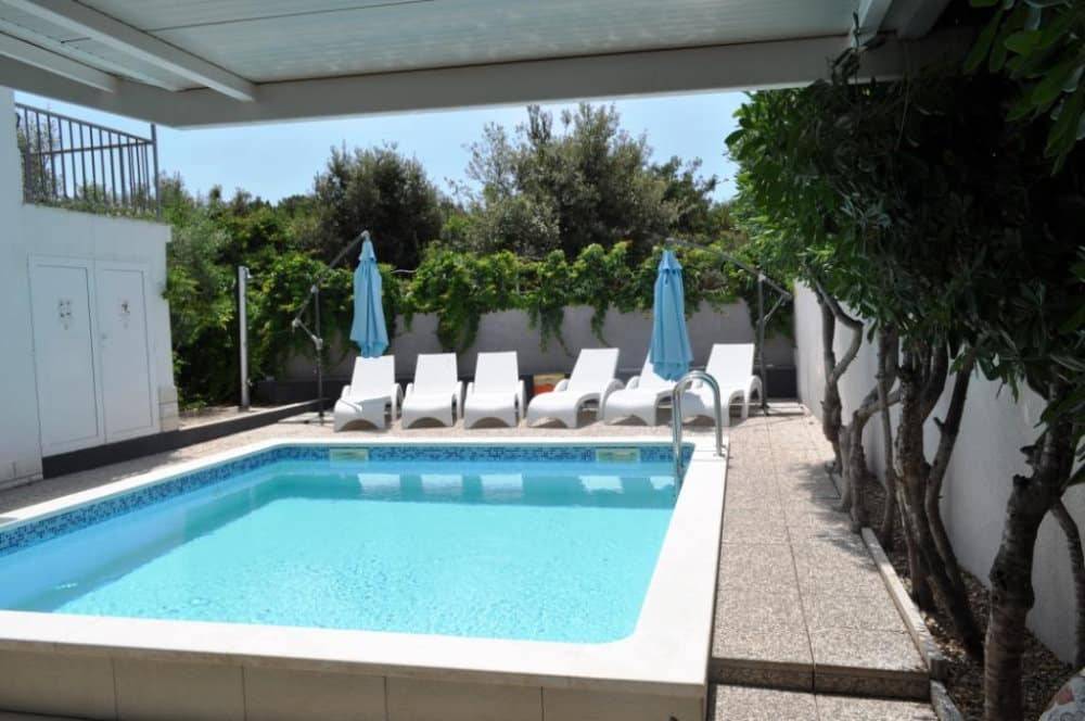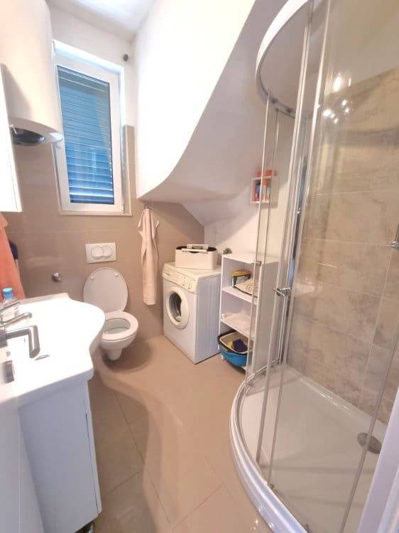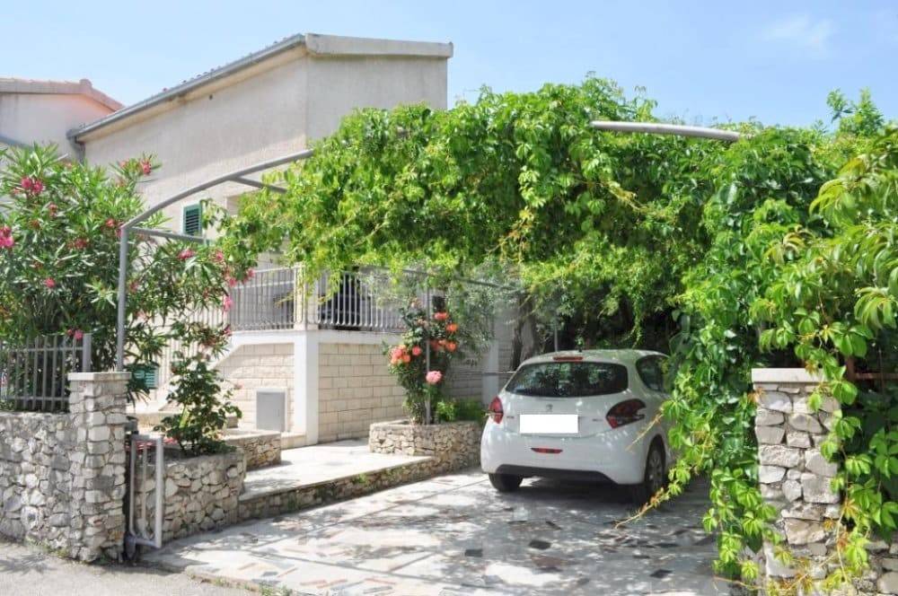 This beautiful apartment house has a total gross construction area of 242 m2, and is located on a plot of 509 m2. The house is spread over three floors (basement, ground floor and first floor), and contains a total of three residential units. The house was constructed in two parts. In the first part of the house, there is a duplex apartment spread over the ground floor and first floor. This apartment consists of three bedrooms, bathroom, toilet, living room, kitchen and dining room. From the living room on the ground floor there is an exit to a spacious terrace where there is a covered dining area, barbecue, swimming pool and sunbathing area.In the second part of the house there are 2 two-bedroom apartments. One is located on the ground floor, and the other on the first floor of the house. Both consist of two bedrooms, bathroom, living room, kitchen and dining room. The apartment on the first floor has access to a terrace with a beautiful sea view. There is a storage room in the basement of the house. The yard is beautifully decorated, paved and planted with greenery. The house is fully equipped and furnished. Except for family life, this house is also an excellent opportunity for investment due to the already well-established business of renting for tourist purposes. The property is in an excellent location, in a quiet neighborhood, surrounded by family houses, and only 300 m from the sea.It is 8 km from Trogir, 14 km from Split airport, and 37 km from the center of Split.