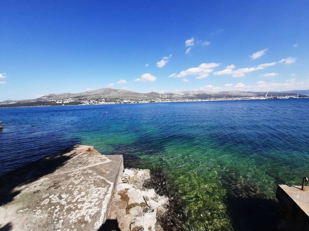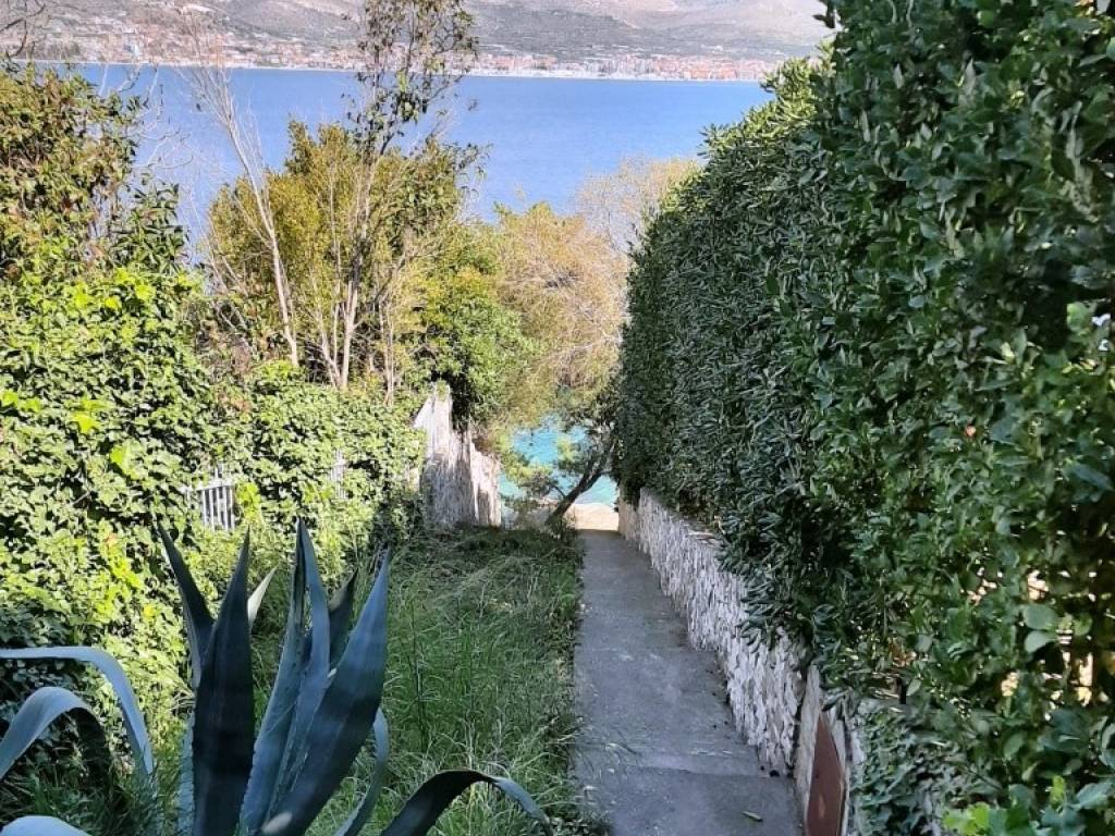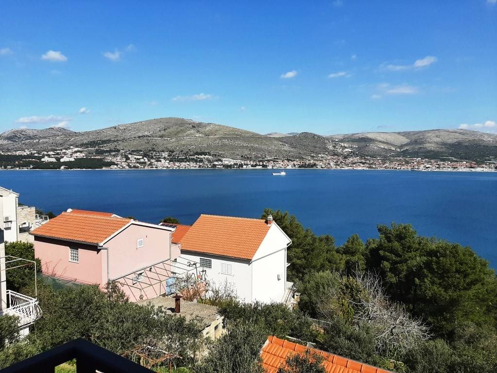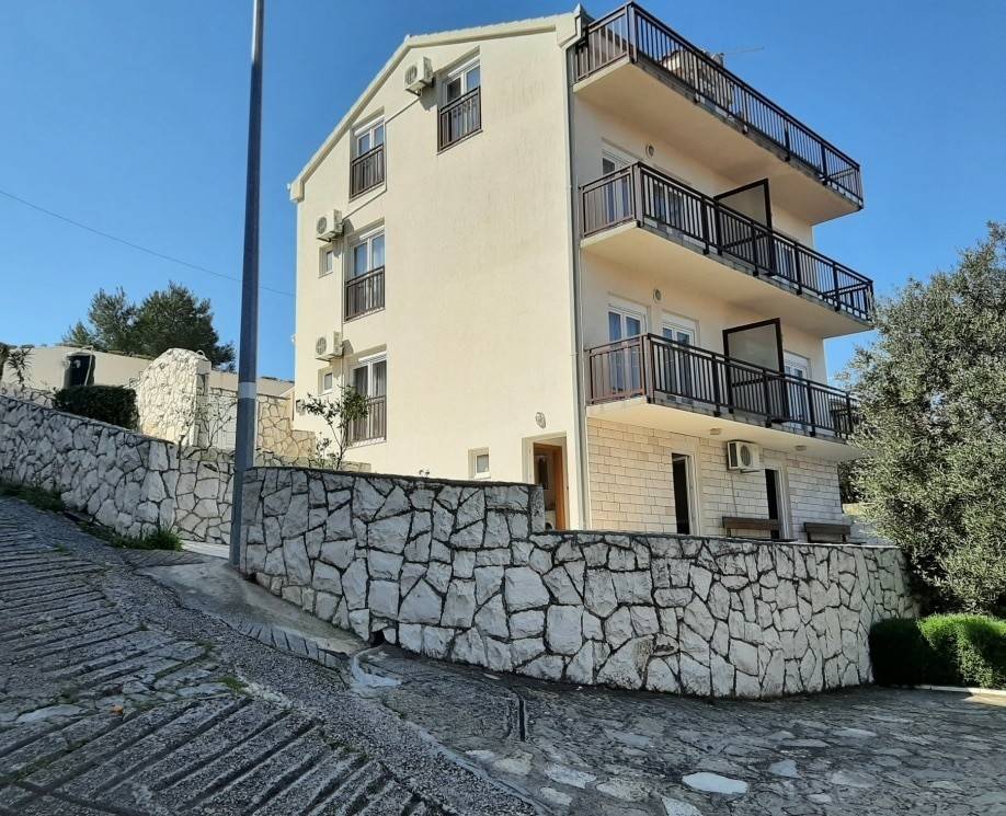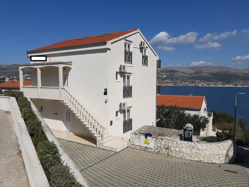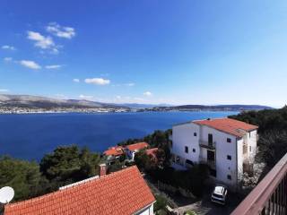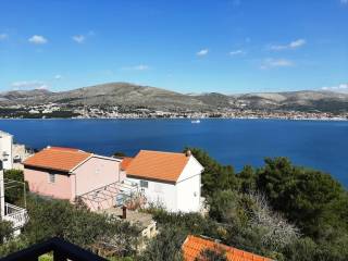 The house has a total built-up area (including the actual area of the balcony, staircase and front entrance) 294 m2 + storage building area 8.60 m2 + an open-plan garage with a construction area of 38.80 m2 (height 3.30m).House is located on a plot with a total area of 678 m2. Levels: ground floor, two floors and a high attic (height of house 9.90 m), a total of seven separate, furnished apartments. The apartments are fully equipped and functional, and are used for seasonal rental. On the ground floor there is an apartment with one bedroom, kitchen/dining room and bathroom. There are two two-bedroom apartments on the first and second floor (each: two bedrooms, living room/kitchen, bathroom, balcony). On the top floor in the high attic there are two one-bedroom apartments (each: bedroom, bathroom, kitchen/living room and balcony).On the south side of the house there is a beautifully decorated heated pool of 32 m2 with a sun deck, while in front of the house there is a nice spacious terrace with deck chairs. In one part of the plot (west part) there are two BBQ and large tables for social gatherings. Stone slabs have been placed around the house, the stairs are covered with stone of Brac. The carpentry on the house is PVC, and the carpentry inside the apartment (doors) is wooden. The house has a thermal façade. Heating and cooling is via reversible air conditioners installed in each apartment. Construction of the house began in 1990 (only the ground floor), and the rest of the house was reconstructed in 2004. The facility has 7 parking spaces. The house is sold fully furnished and equipped.The distance from the sea is 4 minutes’ walk, where there are private, concrete beaches, and ten minutes’ walk from the house there is a well-kept pebble beach, with a café and a restaurant nearby. The center of Okrug Gornji is only 5 km away. There is public transportation near the house, the bus stop is 100 m from the house. In the summer season, there is an island boat line that goes to the UNESCO city of Trogir and the nearby settlement of Seget Donji.This house is suitable for carrying out tourism activities, but also like a family villa for living, given its location, the house offers the possibility of an ideal holiday in a quiet part of the island, yet within easy reach of all necessary commercial activities. Beautiful view of the sea.Distance from international airport Split 12 km. For any additional information we are at your disposal.