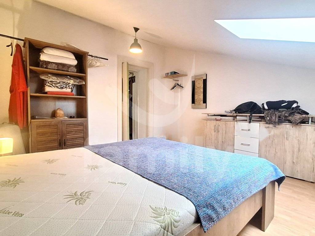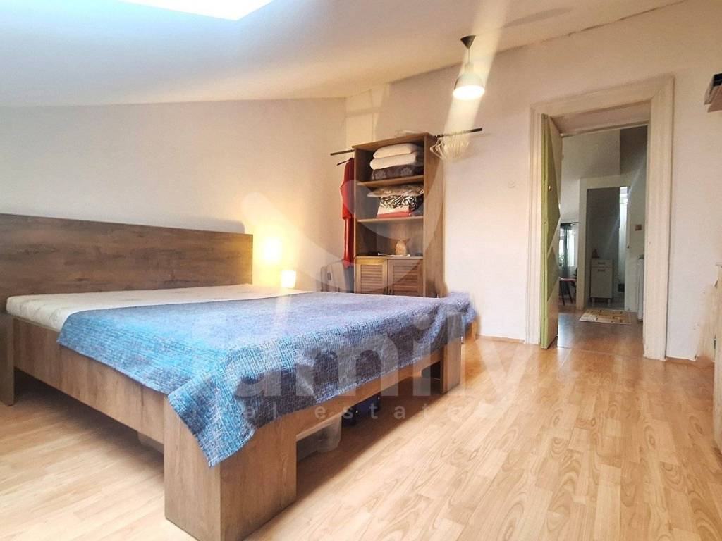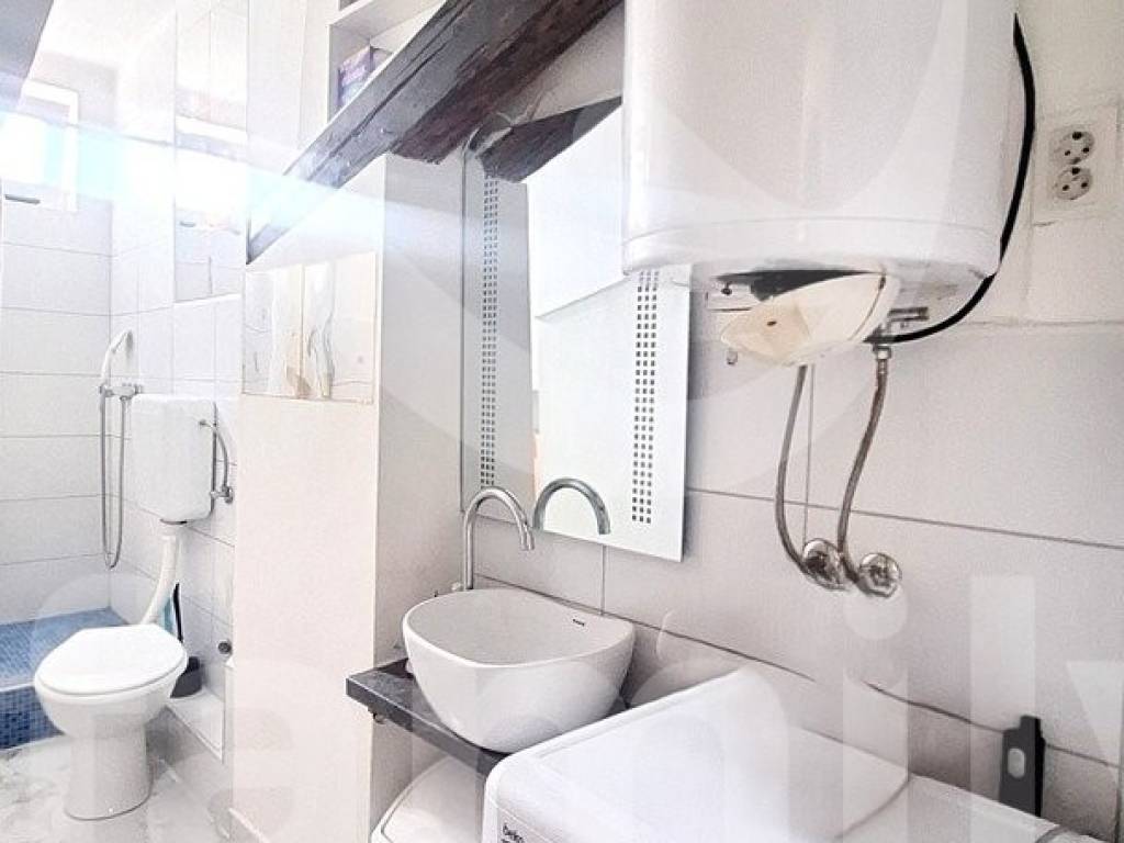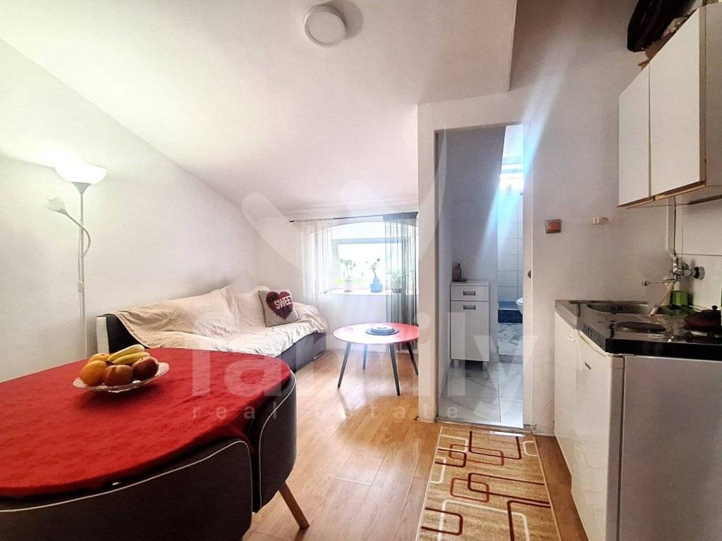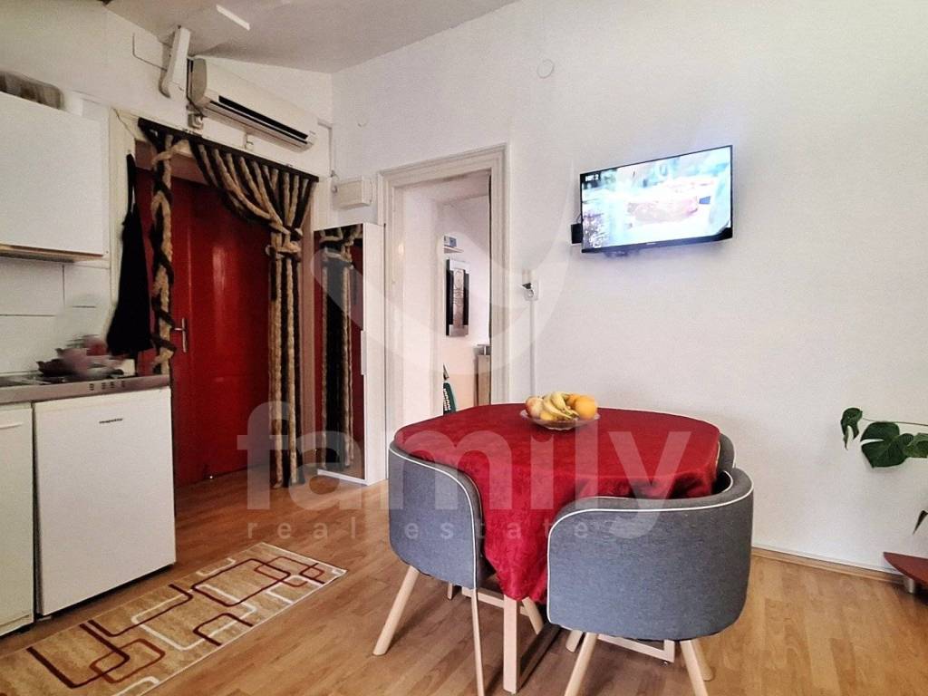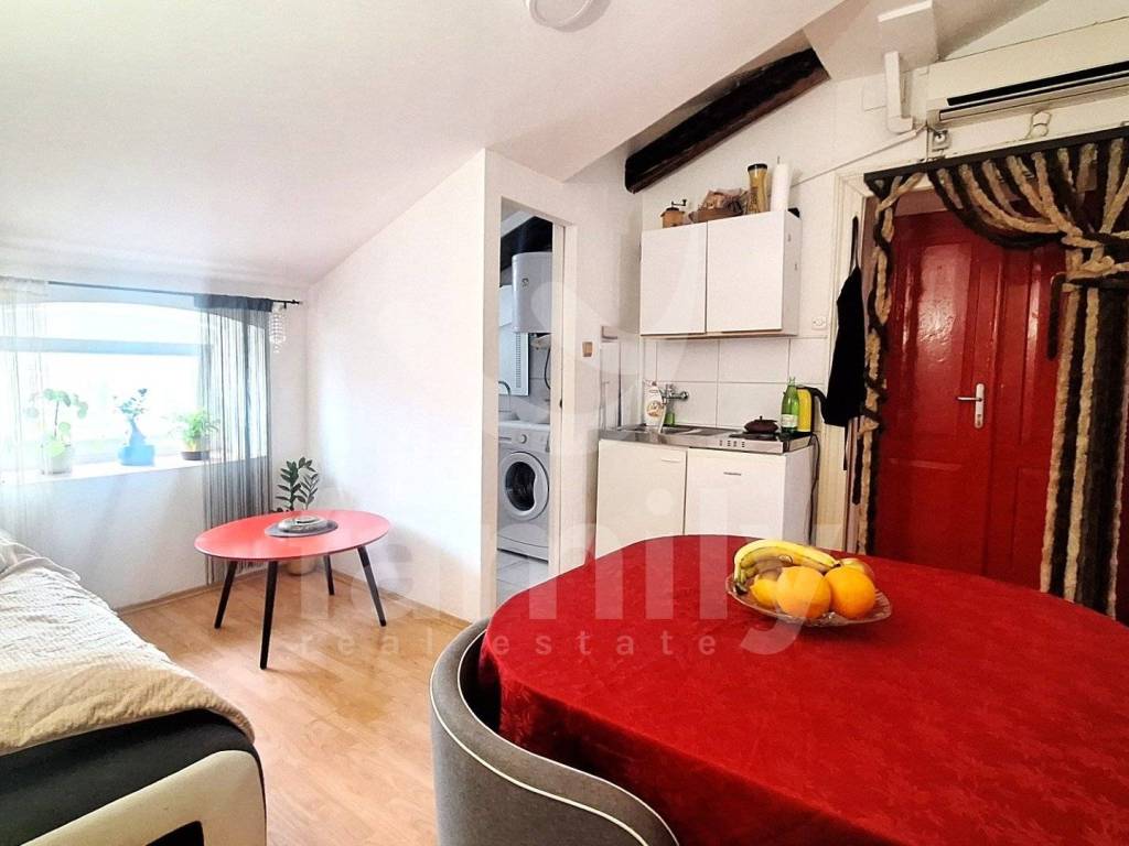 A charming apartment for sale is located in the immediate vicinity of the center in an extremely sought-after location of only 30 m2. The apartment is located on the third floor of a building with extremely great potential for additional decoration. The property is sold fully furnished. The property consists of an entrance area where there is currently a small kitchen, a charming living room with a dining table and a sofa. The bedroom is separate and forms a separate space where the floors are covered with laminate. The bedroom is spacious and we have a space where a tall wardrobe can fit, and in the lowest part of the room, a lower built-in wardrobe can be made completely along the entire length of the room. The living opening in the bedroom is roofed and wooden. The floors are covered with laminate in the day and night areas. The bathroom is tiled, has a shower and has a living room. The property is equipped with an air conditioning unit and PVC joinery. There is a parking lot behind the building that is available to the tenants of the building, although the parking space is not owned. In addition to the apartment on the ground floor, you can use a storage room of approx. 15 m2, which is a separate area with a separate door.