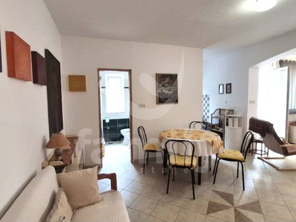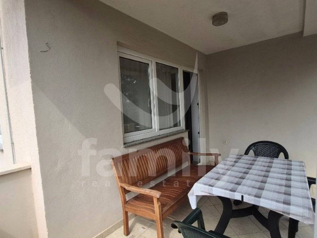 In Ližnjan there is an apartment in a quieter part of the village on the ground floor of a small building of only 57 m2. The apartment consists of a spacious living room with access to a balcony, an open-plan dining room connected to an equipped kitchen, a small bedroom and a bathroom equipped with a shower cabin, bidet and a living opening. The entire apartment is tiled with natural-tone ceramics and white PVC joinery is also installed throughout the building.