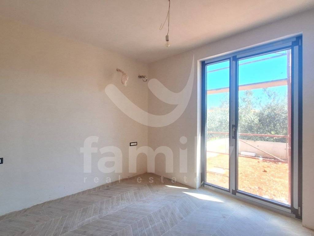 It is in Banjole, in a very quiet location, that the aforementioned modern and high-quality new construction of a small residential building by a proven investor with a total of 8 residential units is located. The aforementioned apartment, measuring 51.87 m2, is located on the ground floor and consists of an entrance hall equipped with a burglar-proof entrance door, one bright and comfortable bedroom with access to a terrace and garden, a spacious living room connected to an open-space concept kitchen and access to a terrace and garden with an area of 4,59 m2, as well as a bathroom equipped with a Geberit built-in cistern, a walk-in shower, installed installations for a washing machine, an Ariston boiler, and a ventilation system. The floors throughout the apartment are covered with high-quality ceramics, and the bedroom has Sherborne wood-imitation ceramics. The heating and cooling system is regulated by two Mitsubishi air conditioning units, one in the bedroom and one in the living room, and electric underfloor heating has also been implemented throughout the building with separate Wi-Fi thermostats in each room. PVC joinery with triple-glazed anthracite glass and aluminum roller shutters with electric lifts have been installed, and an anthracite-colored aluminum garden fence will also be installed. The building is equipped with an 8 cm thick thermal facade on the ground floor, with 2 cm thick Travertino classico stone also installed, which certainly contributes to excellent thermal and sound insulation. The apartment has one uncovered parking space as well as one shared toilet located in the hallway of the building, which will be co-owned by all co-tenants, and the work is scheduled to be completed by the end of 2025.