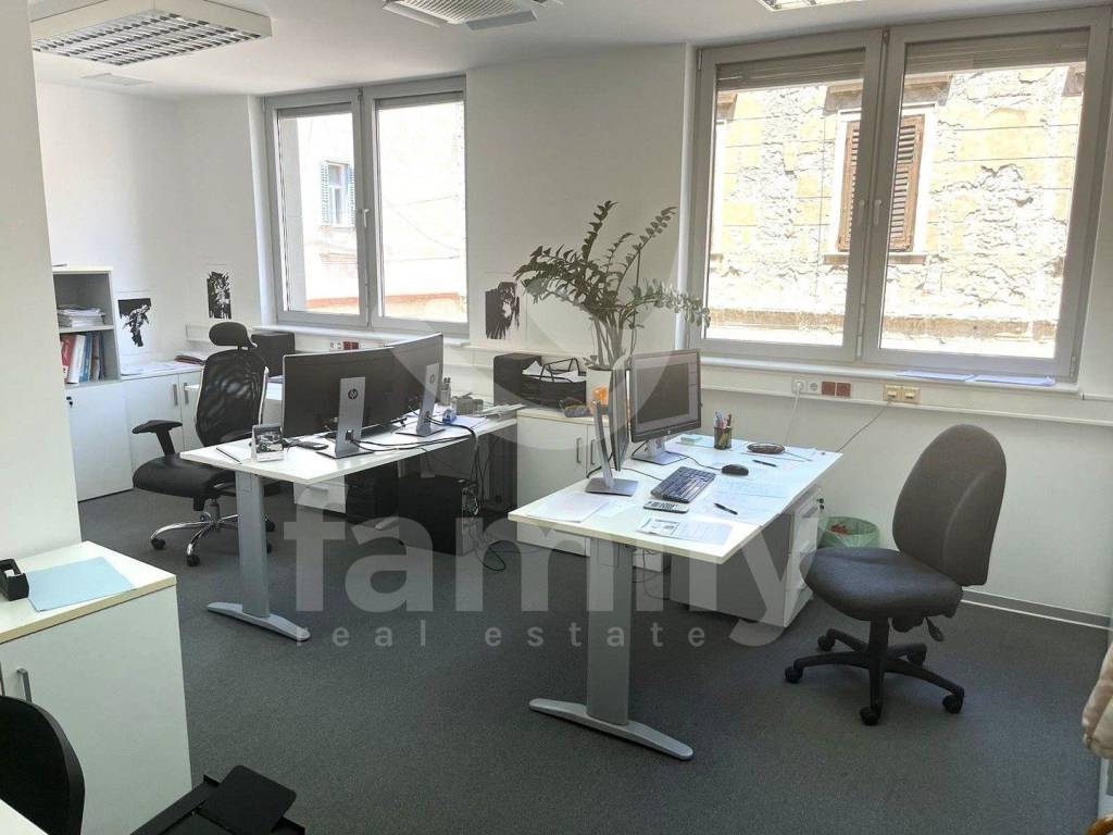 This multifunctional office space on the first floor with an area of 425 m2 is located in the very center of the city of Pula, in a very busy location. The aforementioned office space consists of a reception - info desk, twenty offices, two meeting rooms, four toilets, a kitchen, an archive, a storage area, a photocopier, a room that serves as a cleaning store, and two entrances. The office space is located in a very busy location and can be used for various business purposes, whether it is an office, a clinic, a polyclinic, or the IT sector. The rental price includes one parking space and there is a possibility of renting more parking spaces annually.