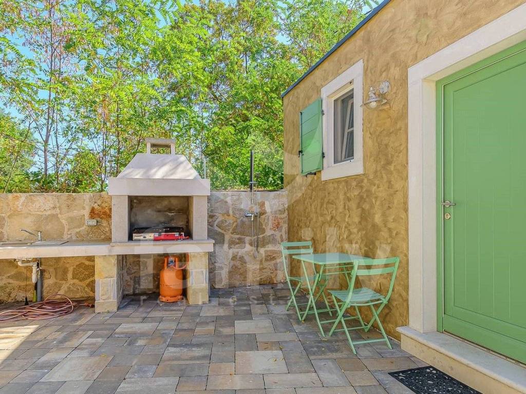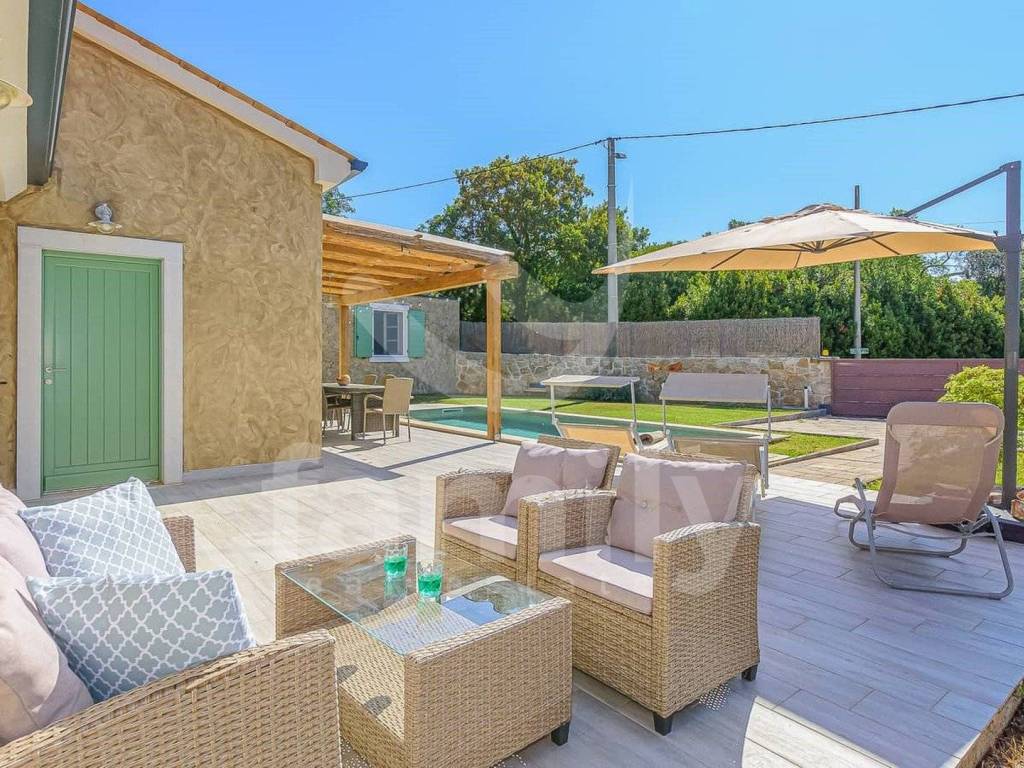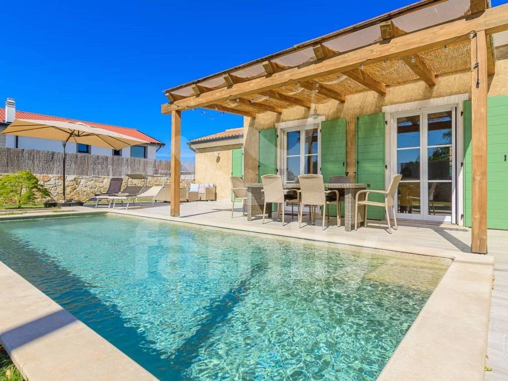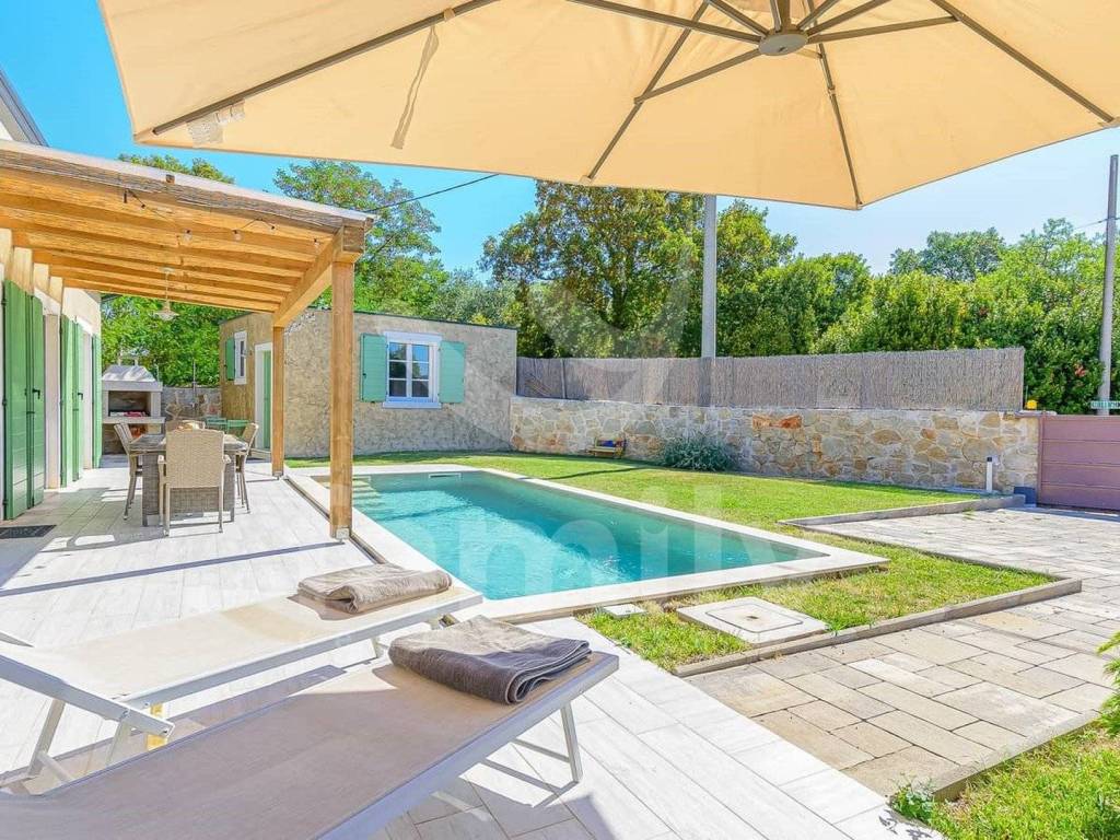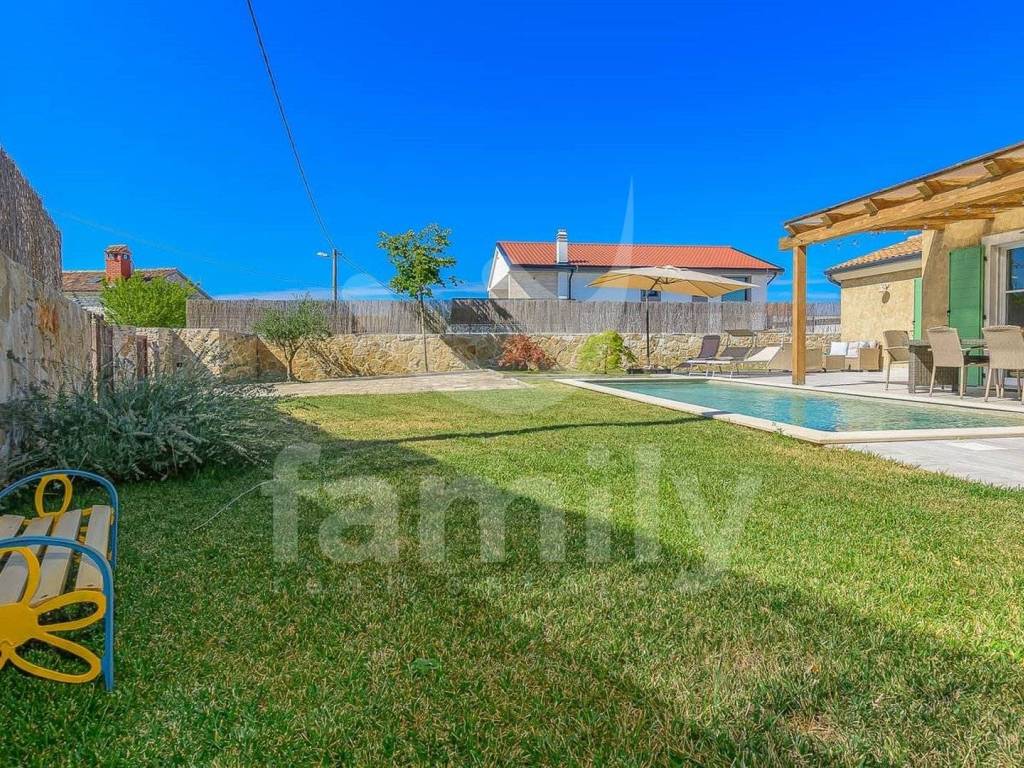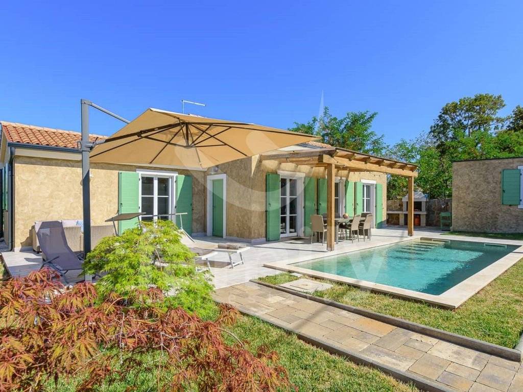 Not far from Rovinj, only a ten-minute drive away, in a quiet and luxurious village, there is this spacious, authentic villa with a total area of 110 m2 and a garden of 400 m2. The main part of the villa consists of a spacious living room that is beautifully lit and has access to a covered terrace and garden, a dining room and kitchen, two bedrooms with en-suite bathrooms and next to it there is another building of approximately 20 m2 with a bedroom and bathroom. High-quality PVC joinery has been installed, and the heating and cooling system is regulated with air conditioning units in each room and room. During the furnishing of the property, attention was paid to every detail, and beams were installed in the rooms, and the furniture is in a modern - rustic style for additional charm of enjoying the Istrian touch. The yard has been meticulously maintained and there is a heated swimming pool of 24 m2 as well as a covered sunny terrace, a sunbathing area, a barbecue and an outdoor sink, all enclosed by a stone dry stone wall.