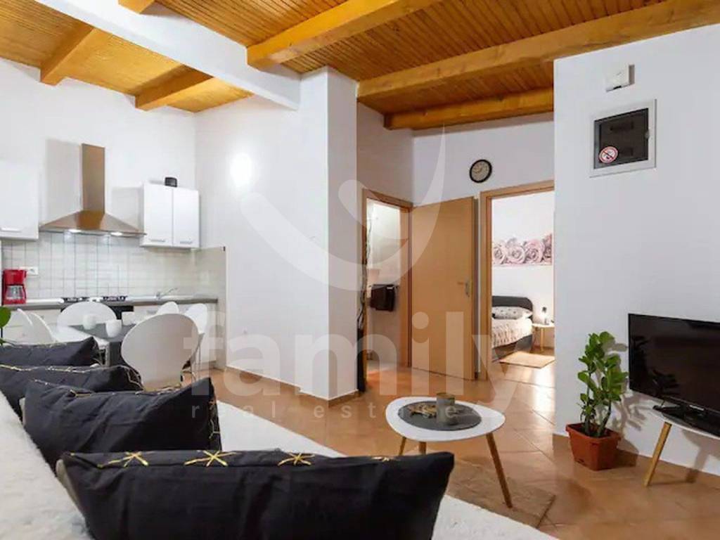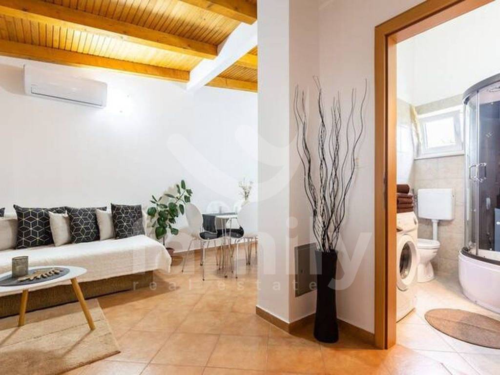Right in Pula, in an extremely quiet location, yet not far from the center, there are two detached single-storey houses with a total area of 164 m2 with a garden area of about 400 m2. The first house has an area of 50 m2 and it has two bedrooms, a bathroom, a living room with a kitchen, a balcony, while in the front part of the house there is a tavern with a kitchen, a large fireplace and a space for socializing with an area of about 26 m2. The house is equipped with PVC joinery, one air conditioning unit and is fully furnished.
