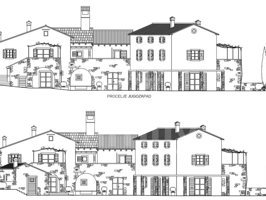 Right in a small settlement, only 5 km from Pazin, there is this beautiful estate with antiques of an enviable surface, next to which there is a construction plot of approx. 4,000 m2 and an extremely spacious agricultural plot of 15,400 m2, which together represents an exceptional complex of estates with high potential . The proposal includes a project for the adaptation of antiques, as well as a building permit and paid utilities. The properties have electricity and water meters.