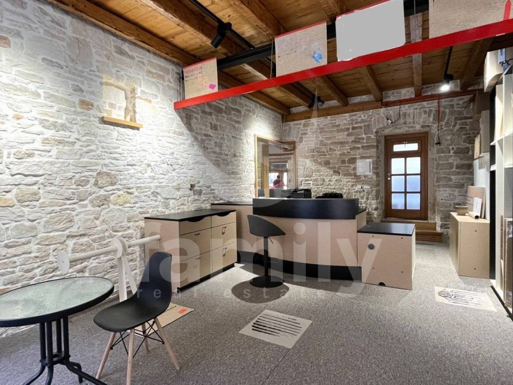 The office space is located in a frequent location in the very center of the city of Pula. This office space is 40 m2 and consists of one room and a toilet. An excellent location offers the possibility of engaging in various activities in this business space where we have electricity and water connections. An air conditioner is used to heat the space. Installations for video surveillance and an alarm system have been prepared in the area.