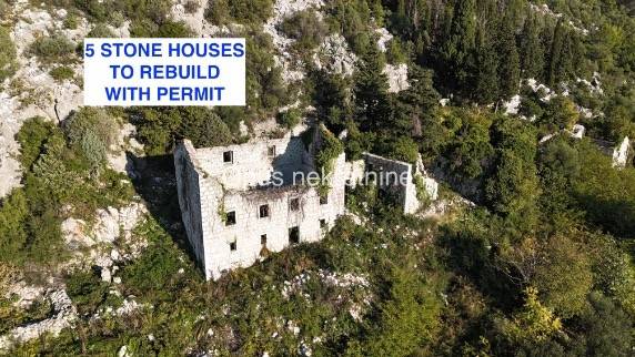 Na parceli se nalazi 5 kamenih ruševina s uporabnim dozvolama i idejnim projektima za renovaciju