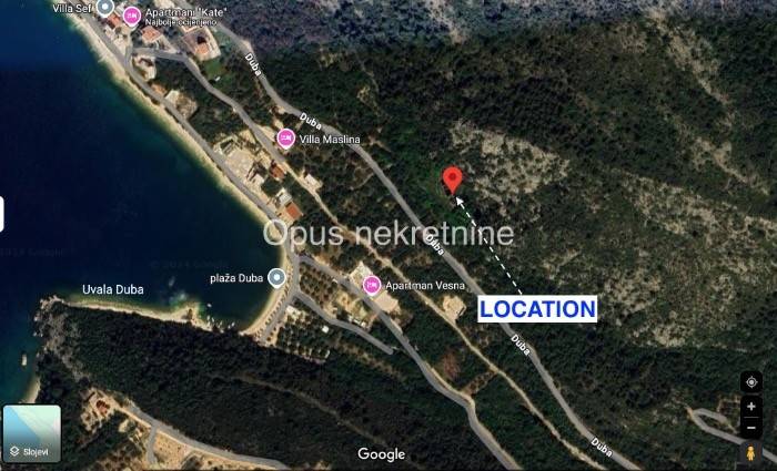 Prodaje se imanje cca 1100 m2 s 5 kamenih ruševina i idejnim projektom na mirnoj lokaciji u mjestu Duba, Općina Slivno. Ruševine imaju uporabnu dozvolu, moguće ih je izmicati. Predivan pogled na more. Mirna lokacija, okružena prirodom ovo izdanje čini izvrsnom investicijskom prilikom za kuće za najam.