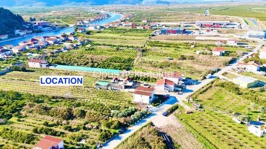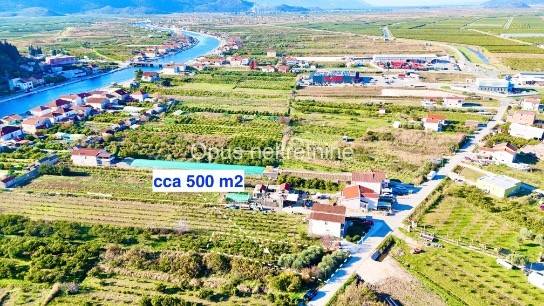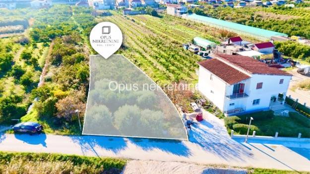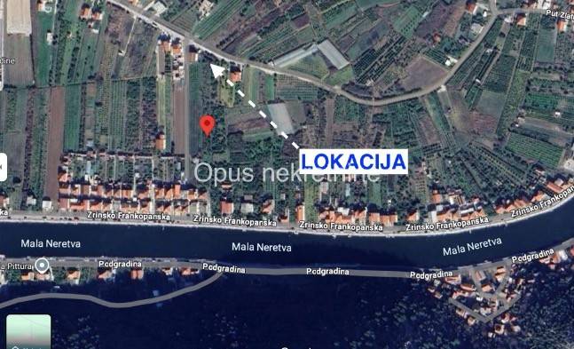 Building land of approximately 500 m2 for sale, right next to the road in Opuzen. The land is light yellow - undeveloped construction zone. Possible to build immediately. Excellent opportunity for a family home in a quiet location near the shopping center and the city.