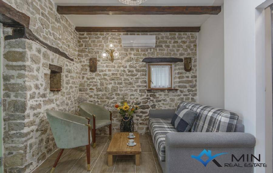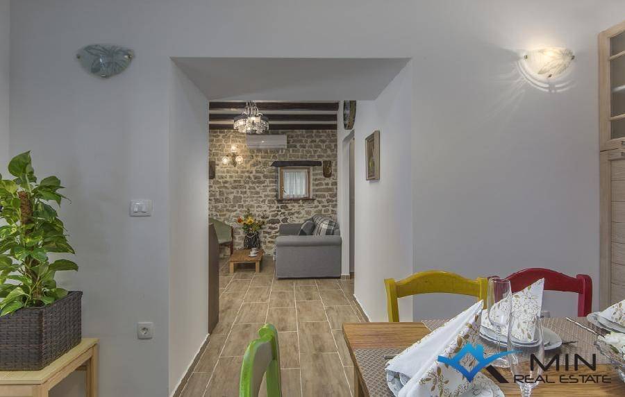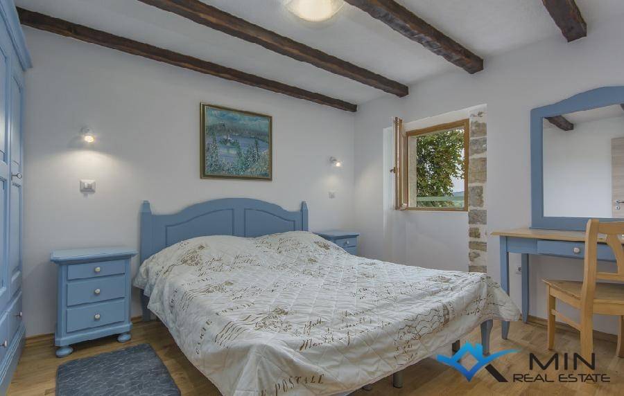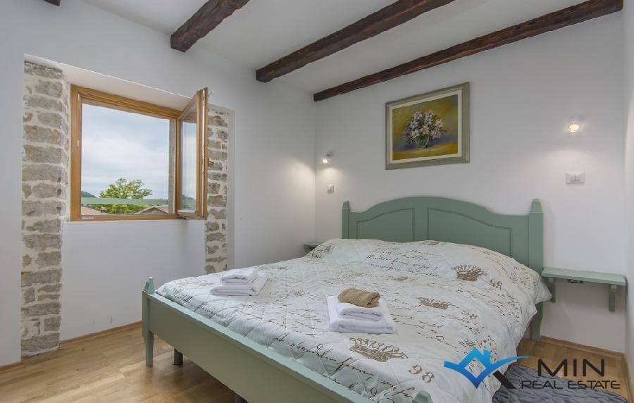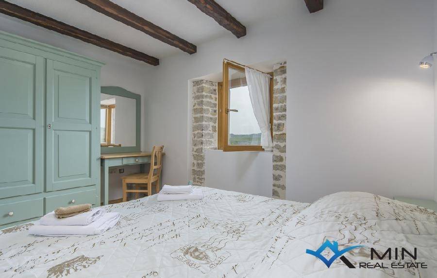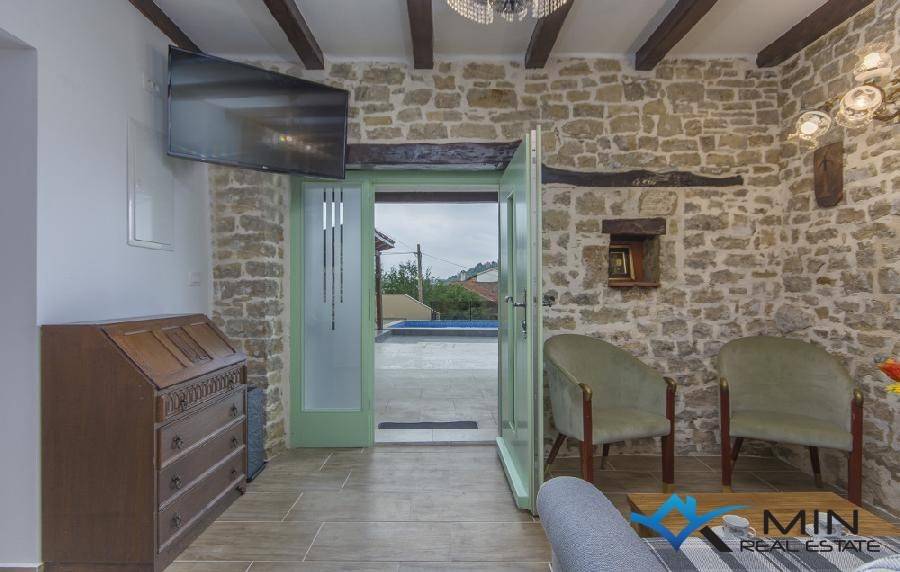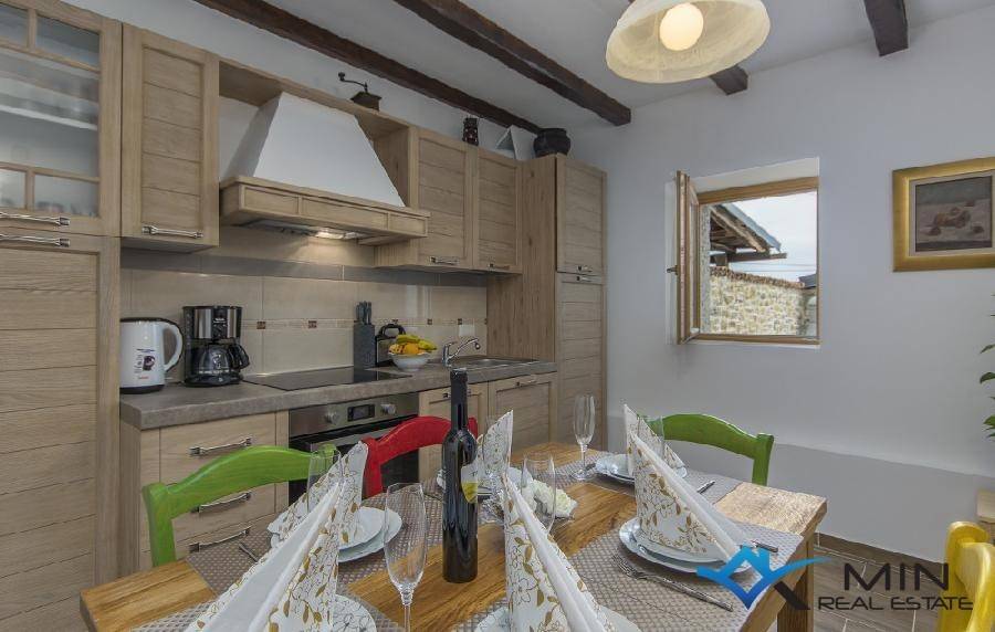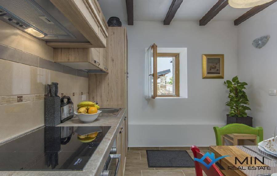 Renovated stone house with swimming pool - Motovun: The stone house is located in a quiet location in the place next to Motovun. From the house there is a beautiful view of nature and Motovun. The house has 2 private parking, a beautifully landscaped garden, a swimming pool and a canopy with a fireplace. It consists of living room, kitchen, dining room, 3 bathrooms and 3 bedrooms. Completely renovated and furnished. Distance from the center of Motovun is 3-4 km and the sea is about 20 kilometers. Renovated stone house for sale with swimming pool in a quiet location near Motovun.