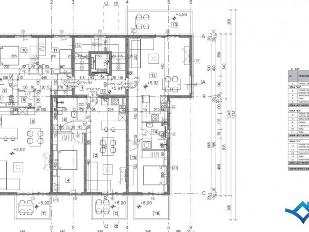 An apartment under construction in a quiet location in Vabriga is for sale. The apartment is located on the 2nd floor of a building with a total of 10 apartments, and the building has an elevator. The apartment is 68.84 m2 m2 and consists of an entrance hall, a storage room, a bathroom, 2 bedrooms, and an open space area in which there is a kitchen with a dining room and a living room with access to a covered terrace. The apartment has a parking space of 12.5 m2 and a storage room of 2.70 m2 on the ground floor of the building. The apartment can be used for residential or tourist purposes. The distance from the sea and the beautifully decorated beach is 1500 m, and the center of Poreč is 8 km away. VAT is included in the price. (APARTMENT "B2")