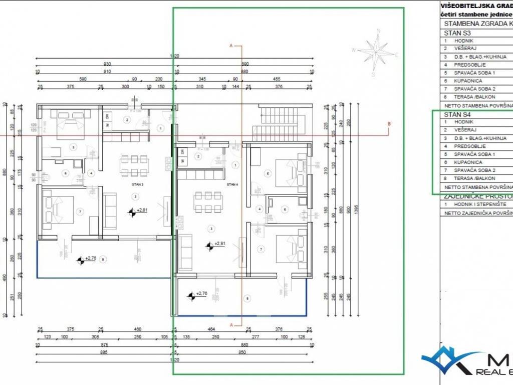 An attractive apartment for sale in a quiet location in Novigrad, 2000 m from the center of Novigrad and 1800 m from the sea and a beautifully landscaped beach. The apartment is located on the 1st floor of a building with a total of 4 apartments and has 78 m2. The apartment consists of an entrance hall, a laundry room, a bathroom, 2 bedrooms and an open space where there is a kitchen with a dining room and a living room with access to a large balcony of 21 m2. The apartment has 1 parking space and a large roof terrace of 70 m2 with a view of the sea. The apartment has been prepared for underfloor heating, and cooling is via air conditioning. The apartment can be used for residential or tourist purposes.