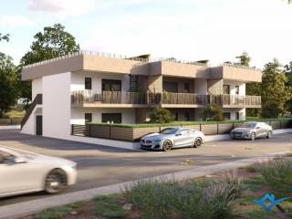A newly built apartment in a good location near Umag is for sale. The apartment is located in Zambratija and is located on the ground floor of a building with a total of 6 apartments. The apartment has 55 m2 + uncovered terrace 14, 22 m2 + covered porch 2, 20 m2 and consists of an entrance hall, bathroom, 2 bedrooms and an open space area with a kitchen with dining room and living room with access to a covered terrace and garden of 65 m2. Heating and cooling is via air conditioning and a fireplace or pellet stove. The apartment can be used for residential or tourist purposes. The distance from the sea and a beautifully decorated beach is 500 m, and the center of Umag is 5 km away. VAT is included in the price.