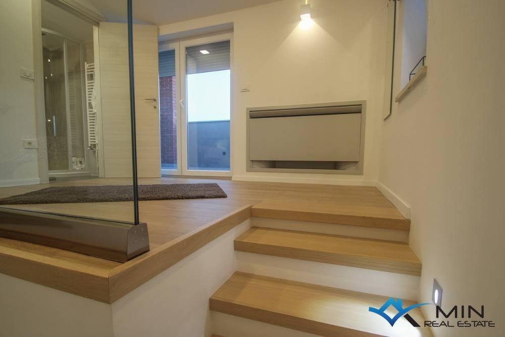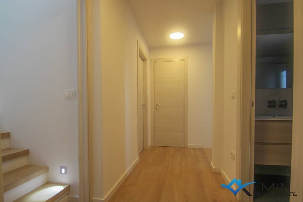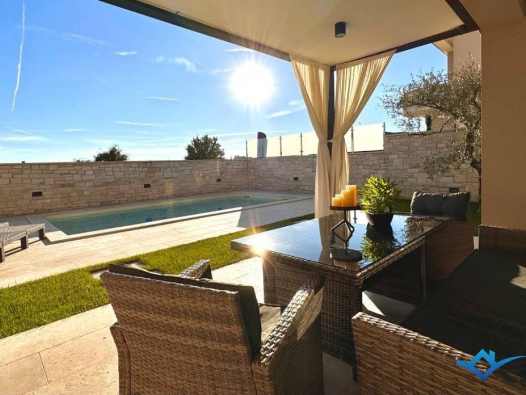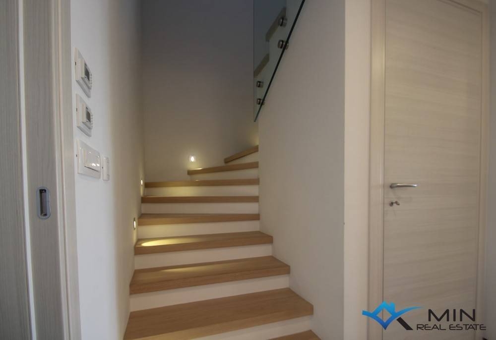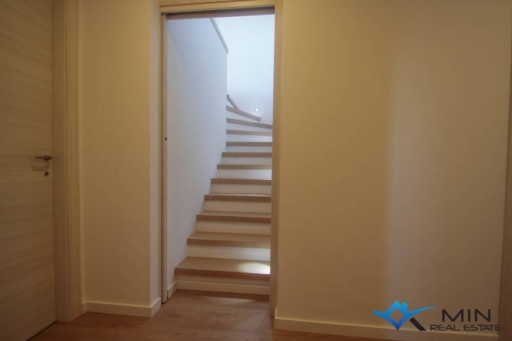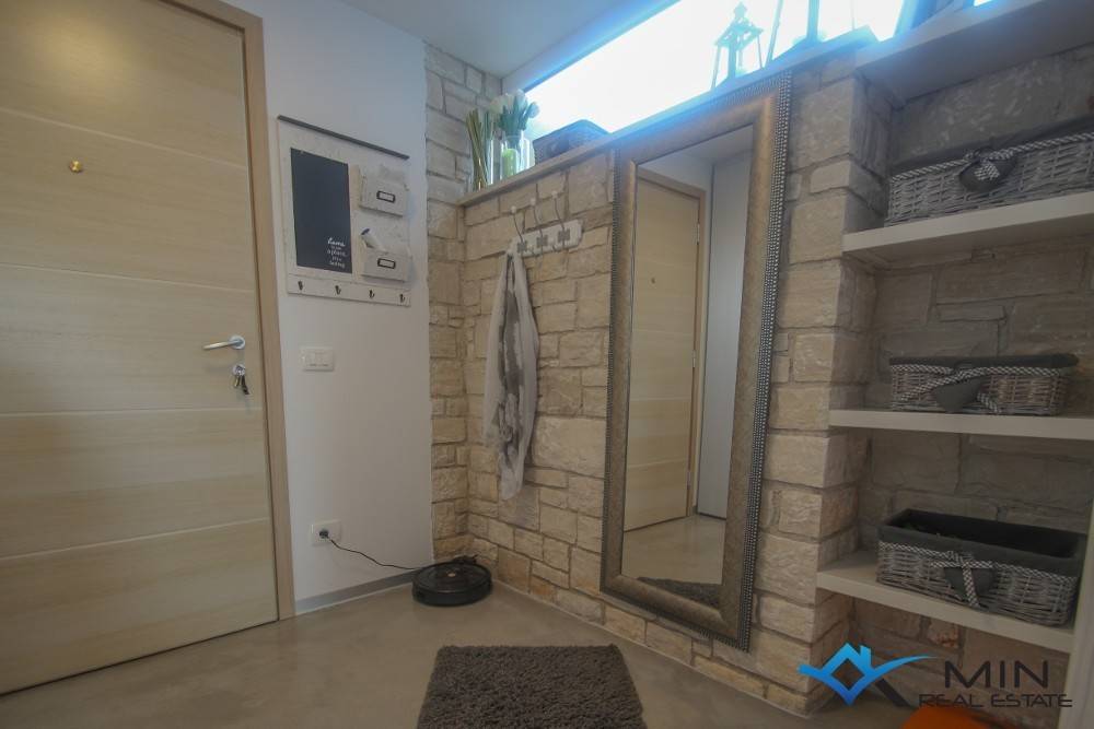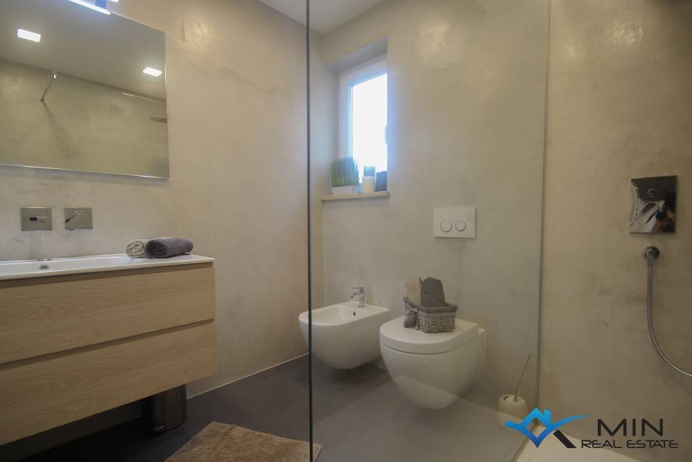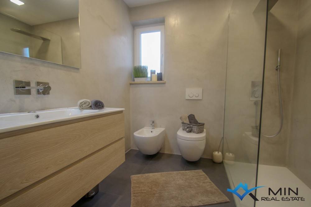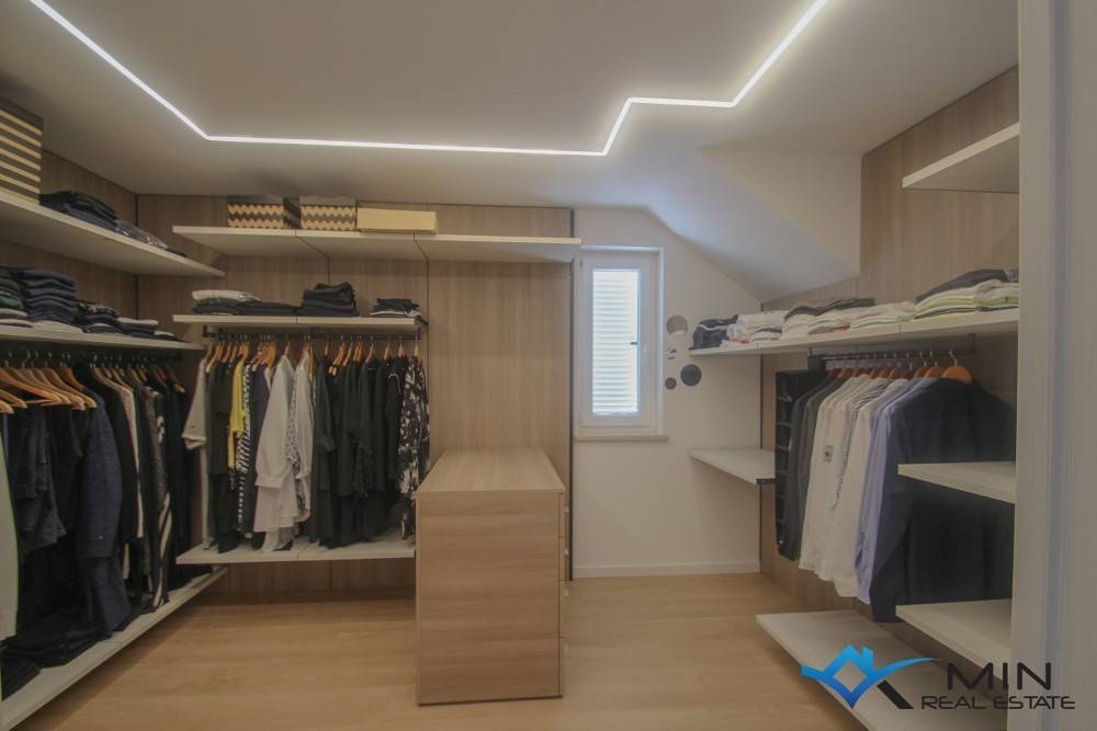 In a quiet location, only 1200 m from the sea and 1700 m from the center of Novigrad, a nicely furnished terraced house with a swimming pool is for sale. The house has 185 m2 and is divided into ground floor, first floor and attic. The ground floor consists of a hallway, a storage room, a bathroom and an open space where there is a kitchen with a dining room and a living room with access to a beautifully landscaped garden of 264 m2 with a swimming pool, and there are 2 parking spaces in front of the house. On the 1st floor there are 2 bedrooms, a bathroom and a wardrobe, and in the attic there is a bedroom with a bathroom and access to a covered terrace with a beautiful view of the sea. The ground floor of the house is heated by underfloor heating and a fireplace, and the rest of the house is heated and cooled by air conditioning. The house can be used for residential or tourist purposes.