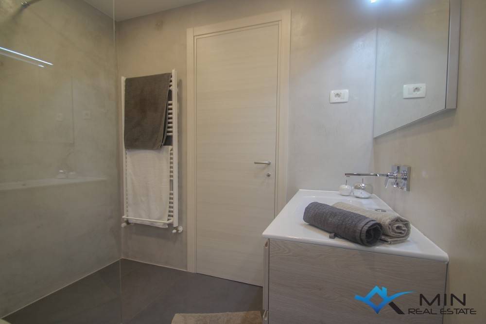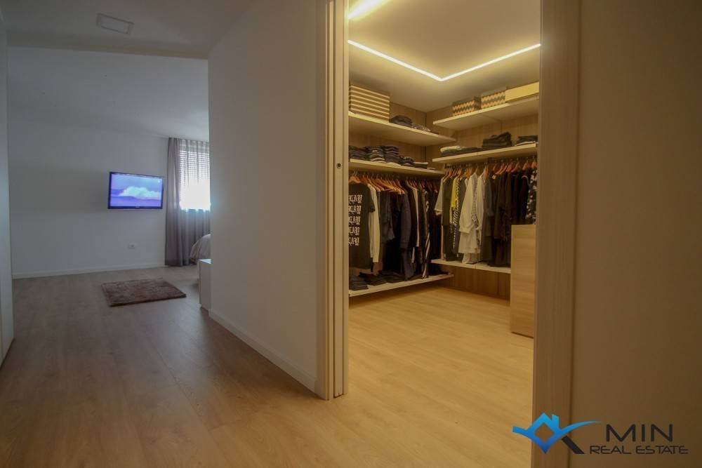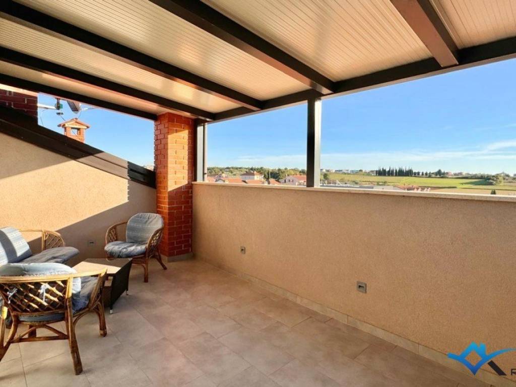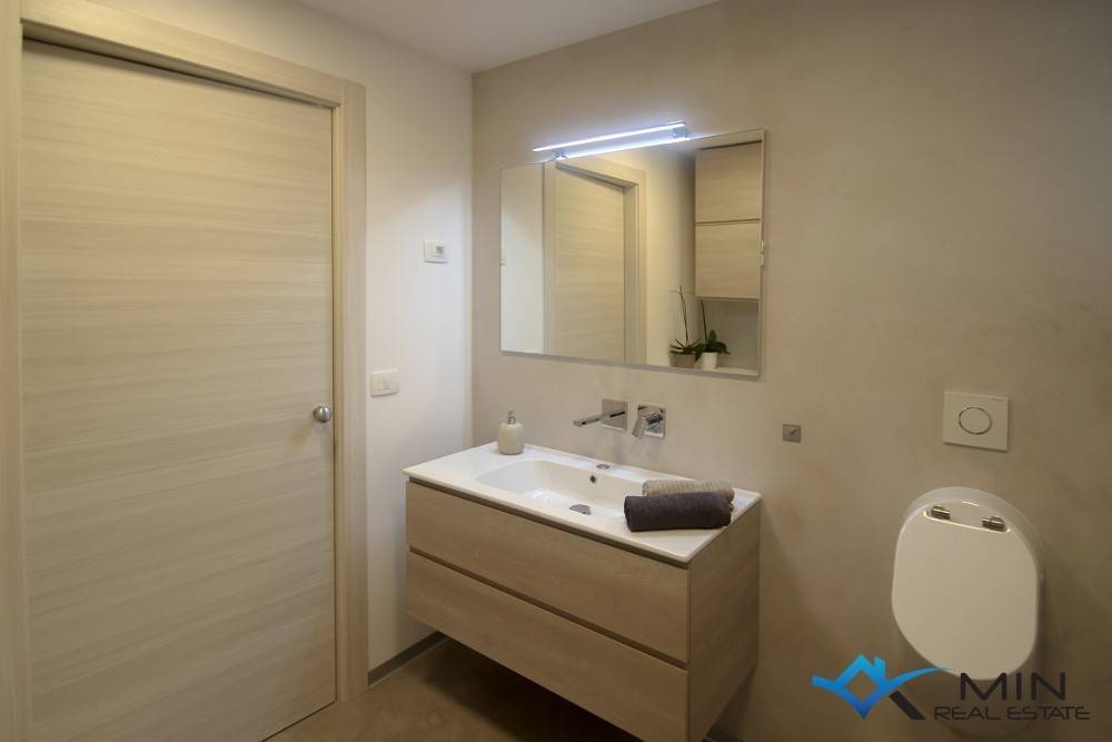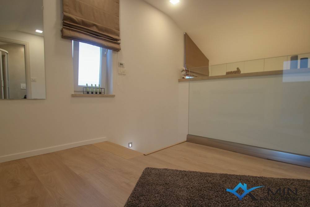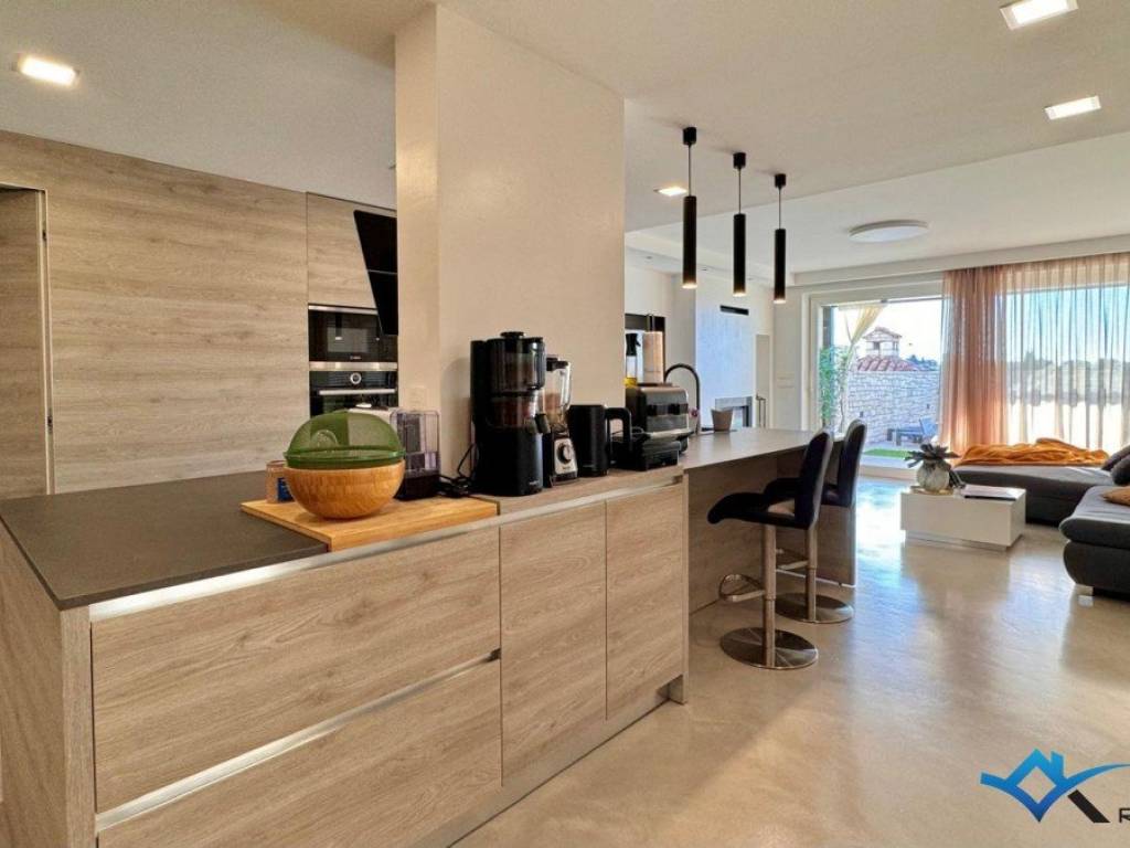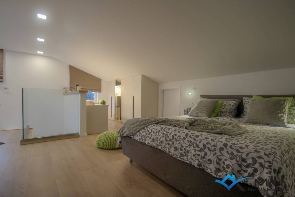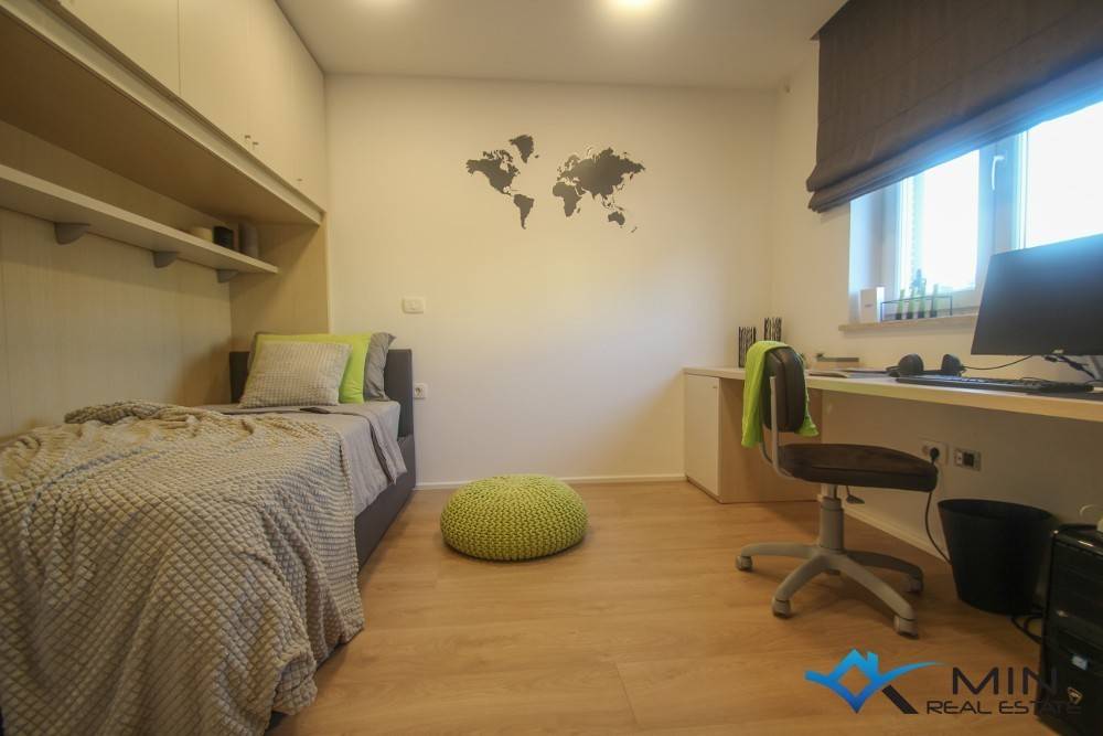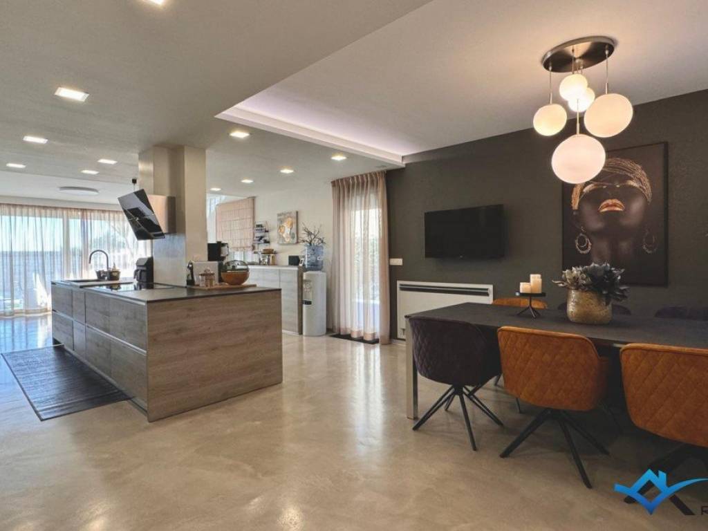 In a quiet location, only 1200 m from the sea and 1700 m from the center of Novigrad, a nicely furnished terraced house with a swimming pool is for sale. The house has 185 m2 and is divided into ground floor, first floor and attic. The ground floor consists of a hallway, a storage room, a bathroom and an open space where there is a kitchen with a dining room and a living room with access to a beautifully landscaped garden of 264 m2 with a swimming pool, and there are 2 parking spaces in front of the house. On the 1st floor there are 2 bedrooms, a bathroom and a wardrobe, and in the attic there is a bedroom with a bathroom and access to a covered terrace with a beautiful view of the sea. The ground floor of the house is heated by underfloor heating and a fireplace, and the rest of the house is heated and cooled by air conditioning. The house can be used for residential or tourist purposes.