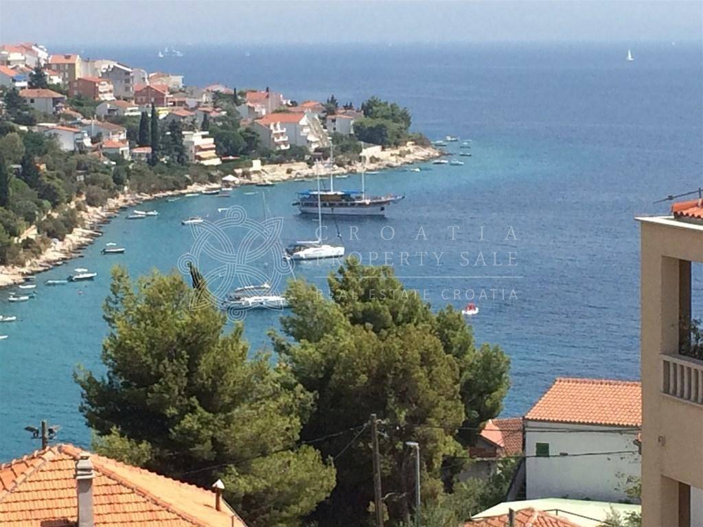 Croatia Trogir Riviera Ciovo sea view villa for sale spans 350 square meters and offers stunning views of the Adriatic Sea.