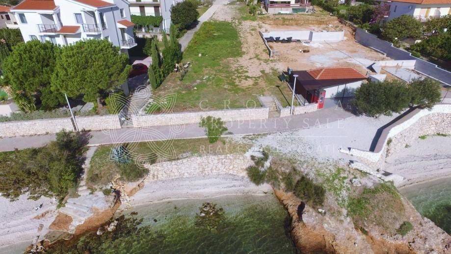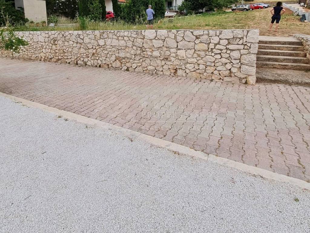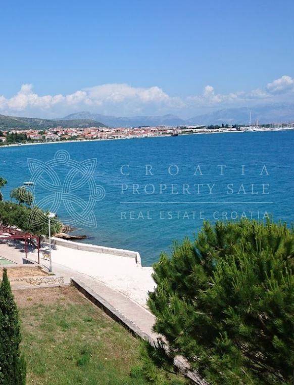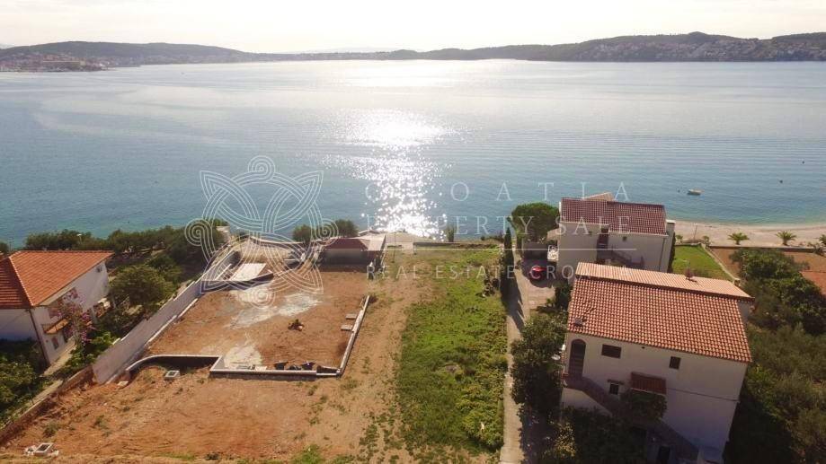 Croatia Trogir Riviera beachfront land for sale spans 1 100 square meters, with direct access to the beach. The land has an 18-meter border along the sea and stretches over 70 meters in length.