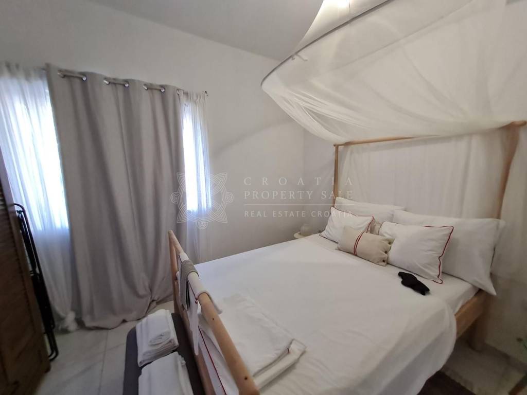 Externally, the house has undergone partial renovation, and the middle floor is functional for living, though it would benefit from additional upgrades. Currently used as a summer getaway, the property boasts a total living area of 188 square meters. Surrounded by lush Mediterranean vegetation, it offers complete privacy while being just steps away from the clear, turquoise waters of the Adriatic.