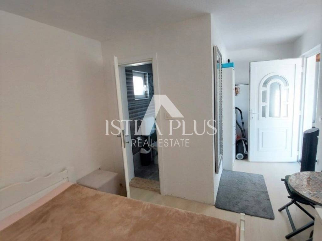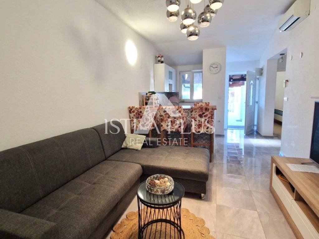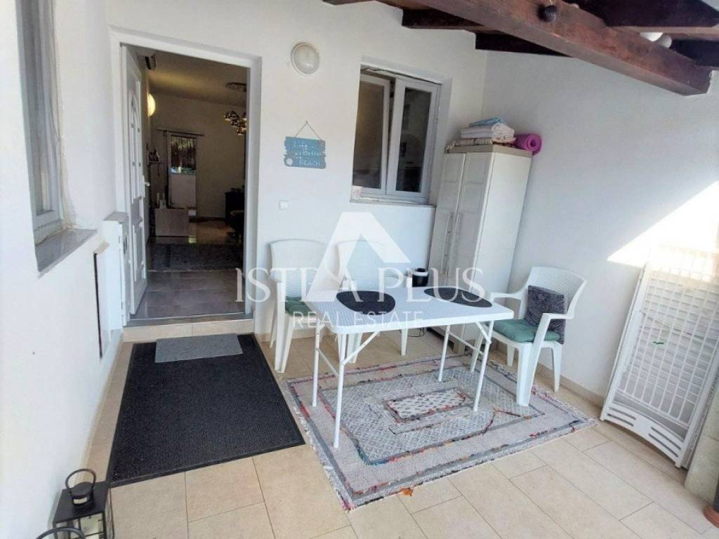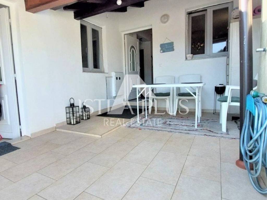 K90 A house for sale in a row (at the end of the row), 50 m from the sea in Červar Porat, 103 m2, contains a kitchen, living room, 2 bedrooms, a gallery, a room with a bathroom in the house and 2 terraces. The house has been renovated.