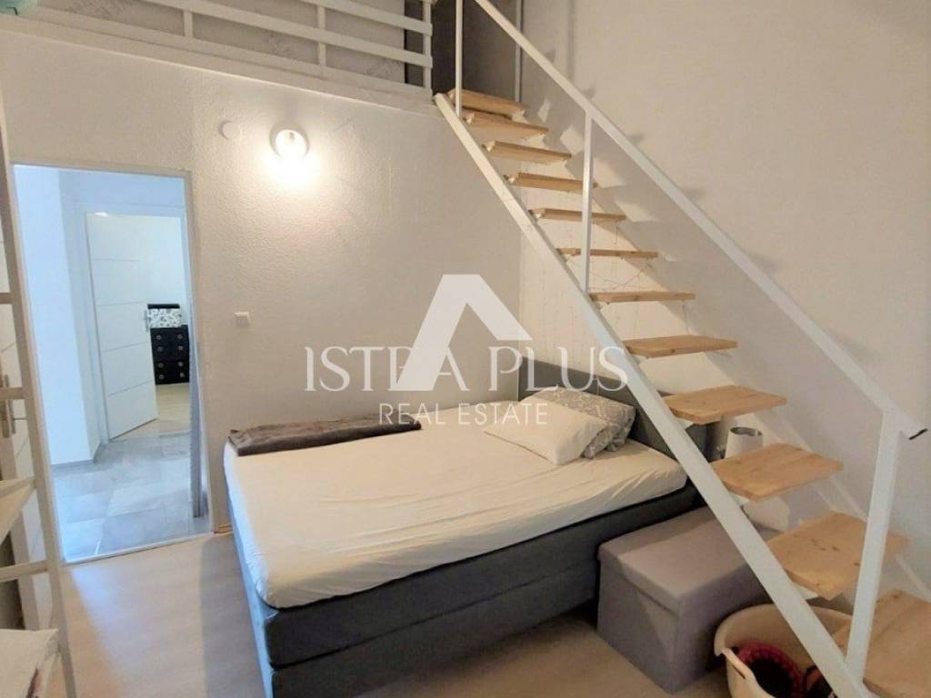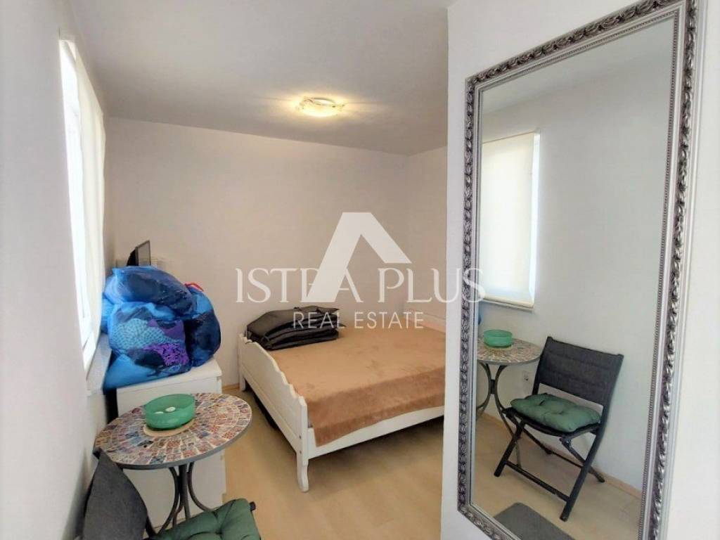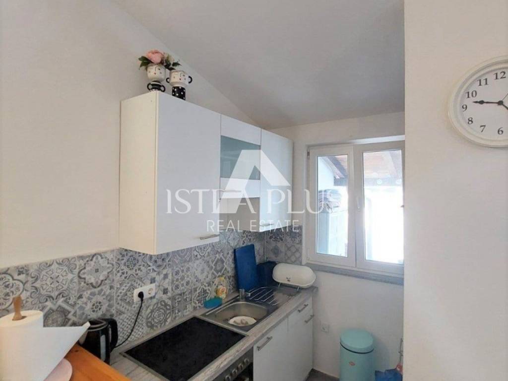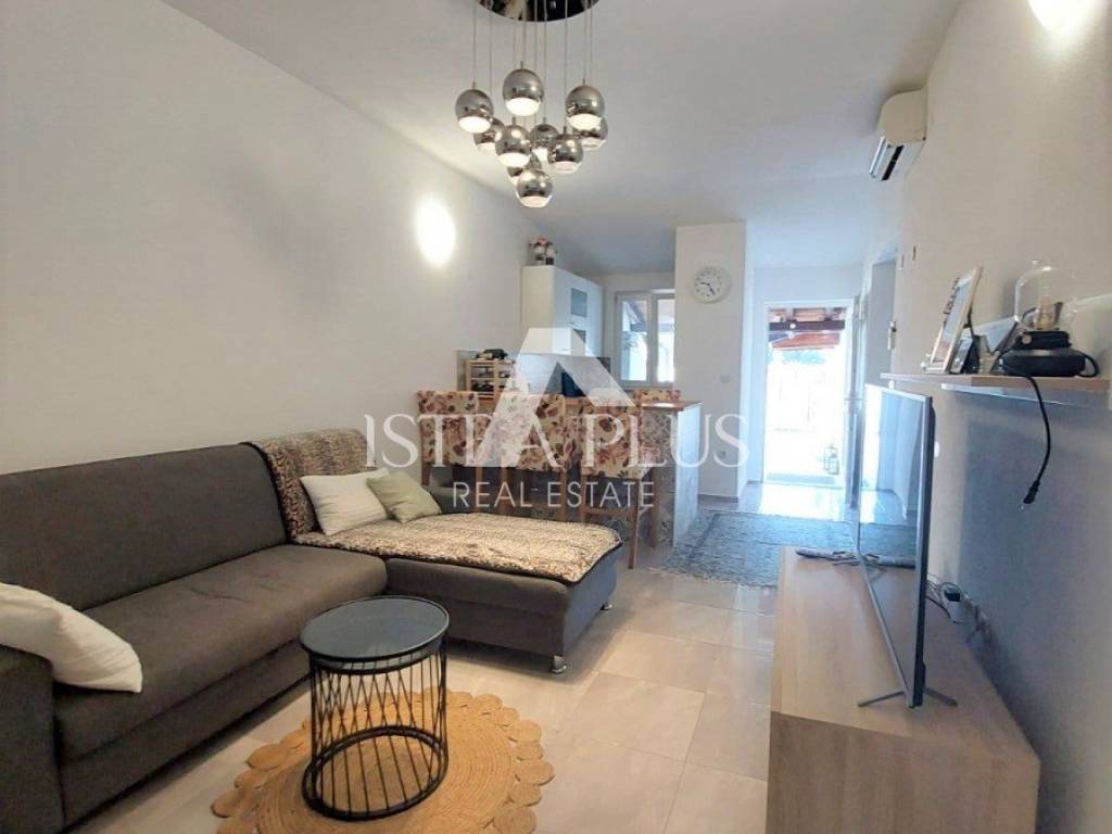 K90 A house for sale in a row (at the end of the row), 50 m from the sea in Červar Porat, 103 m2, contains a kitchen, living room, 2 bedrooms, a gallery, a room with a bathroom in the house and 2 terraces. The house has been renovated.