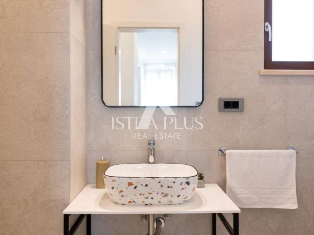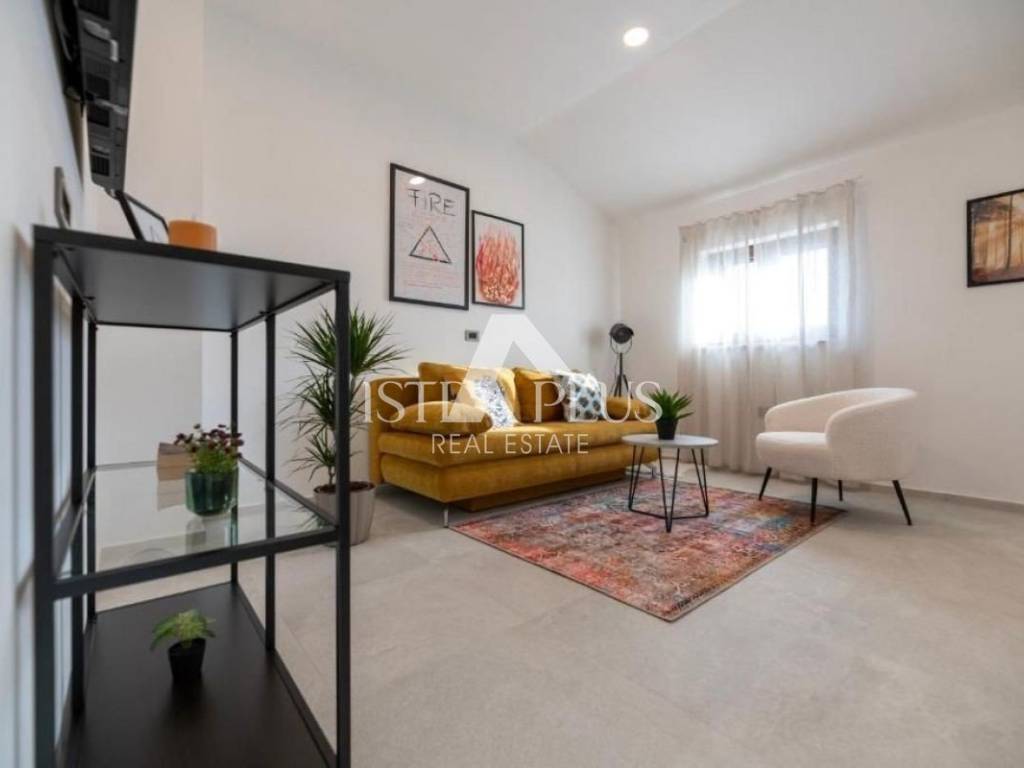 S53 New flat for sale on the 2nd floor. It consists of an entrance hall, kitchen with dining room and living room, two bedrooms and two bathrooms. The apartment is fully furnished and is being sold as such. Heating and cooling with air conditioning and underfloor heating in the bathrooms. The apartment is 3 km from the first beaches. Nearby there is a school, a supermarket, a doctor, a pharmacy and other facilities necessary for life. The buyer does not pay the 3% real estate tax because the apartment is sold by a legal entity.