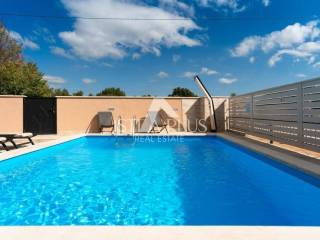 K132 A family house in a row with a swimming pool, it is completely fenced and offers privacy. In front of the house there is a swimming pool and a summer kitchen. On the ground floor of the house there is an entrance hall, a spacious living room, a fully equipped kitchen, a living room, a bedroom and a bathroom. The remaining three bedrooms, bathroom and toilet are located on the first floor, but the bedrooms have access to a spacious terrace.