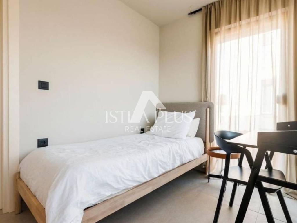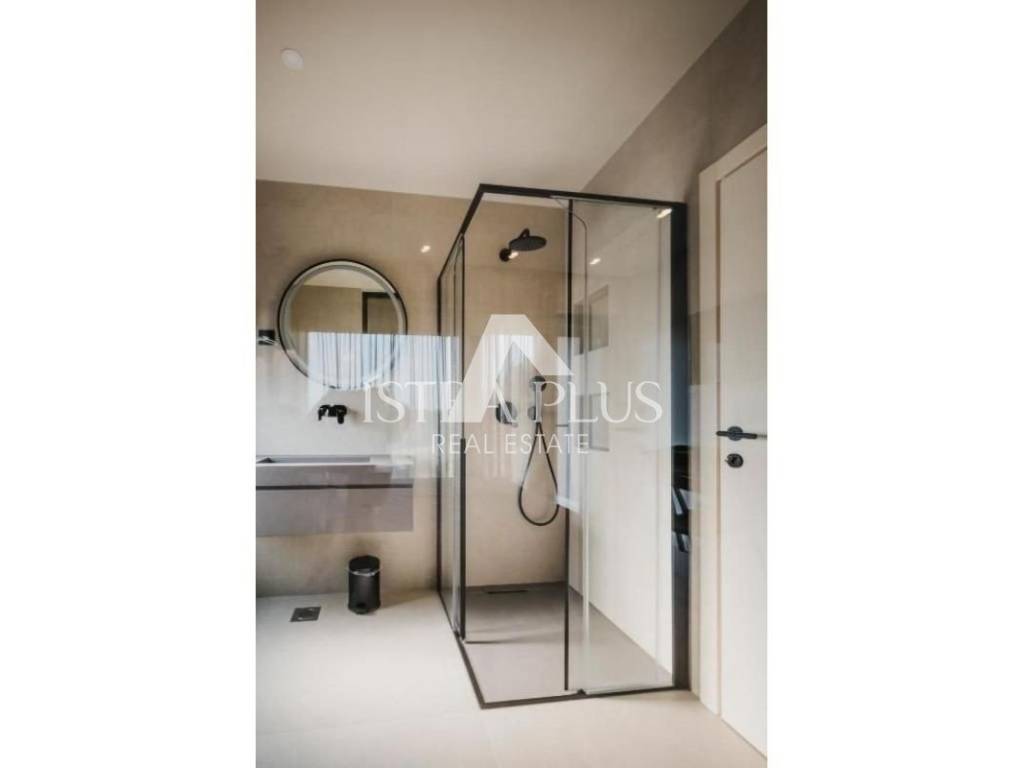 K200 The villa is located not far from Poreč, only 900 m from the sea. It is decorated with a spectacular exterior and a beautifully landscaped garden of 600 m with a view of the surrounding greenery and nature. The villa covers an area of 160 m and consists of 2 floors. The ground floor consists of an entrance hall, kitchen with dining room and living room, bedroom and guest toilet. Large glass walls extend along the entire wall and provide a constant view of the outdoor terrace with pool. Thanks to the large amount of natural light, the space is extremely airy and pleasant to stay in. The first floor of the villa has three bedrooms, each with its own bathroom. All rooms have access to their own balcony, which ensures maximum privacy and comfort. Glazed bathroom walls, neutral interior colors and glass balcony railings give the bedrooms a special look and feel. In the yard of the villa there is a swimming pool with salt water, a sunbathing area and a summer kitchen. The villa is heated by heat pumps, has a fireplace and inverter air conditioning.